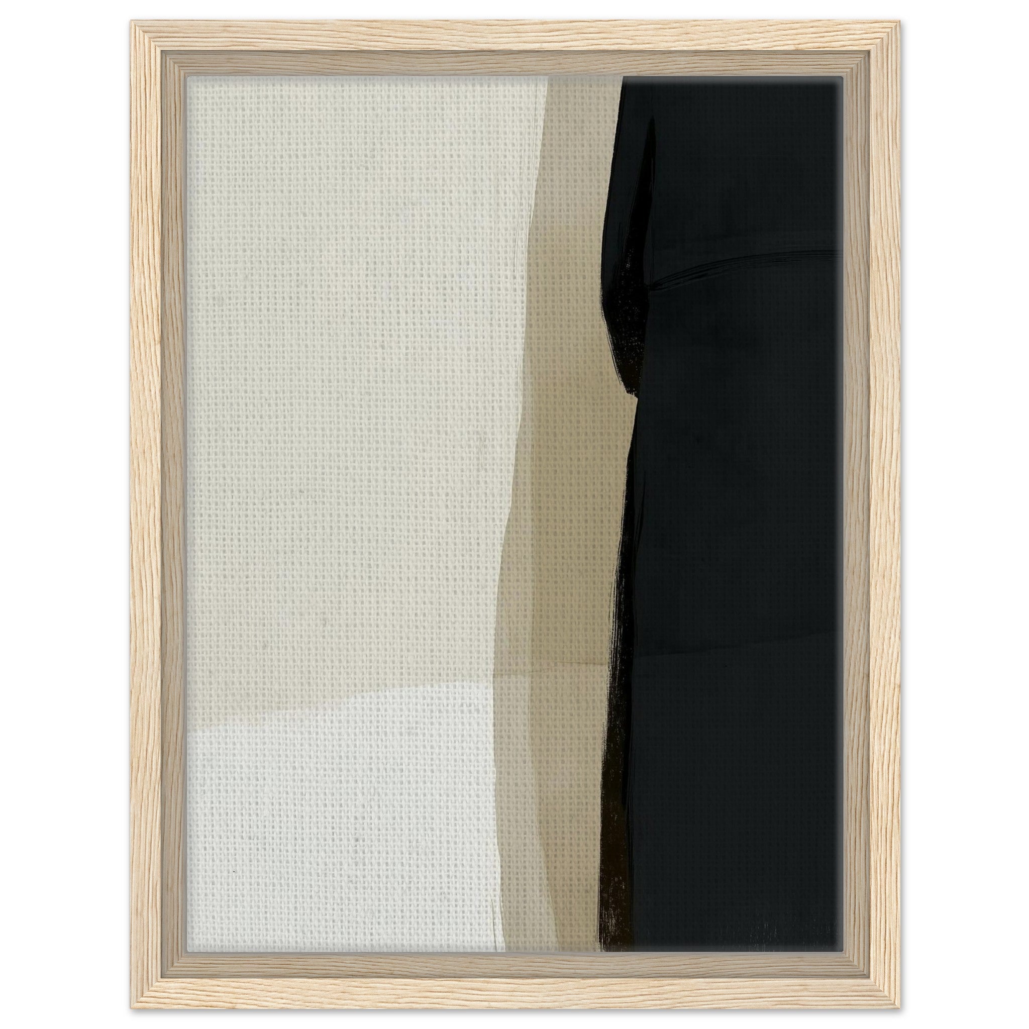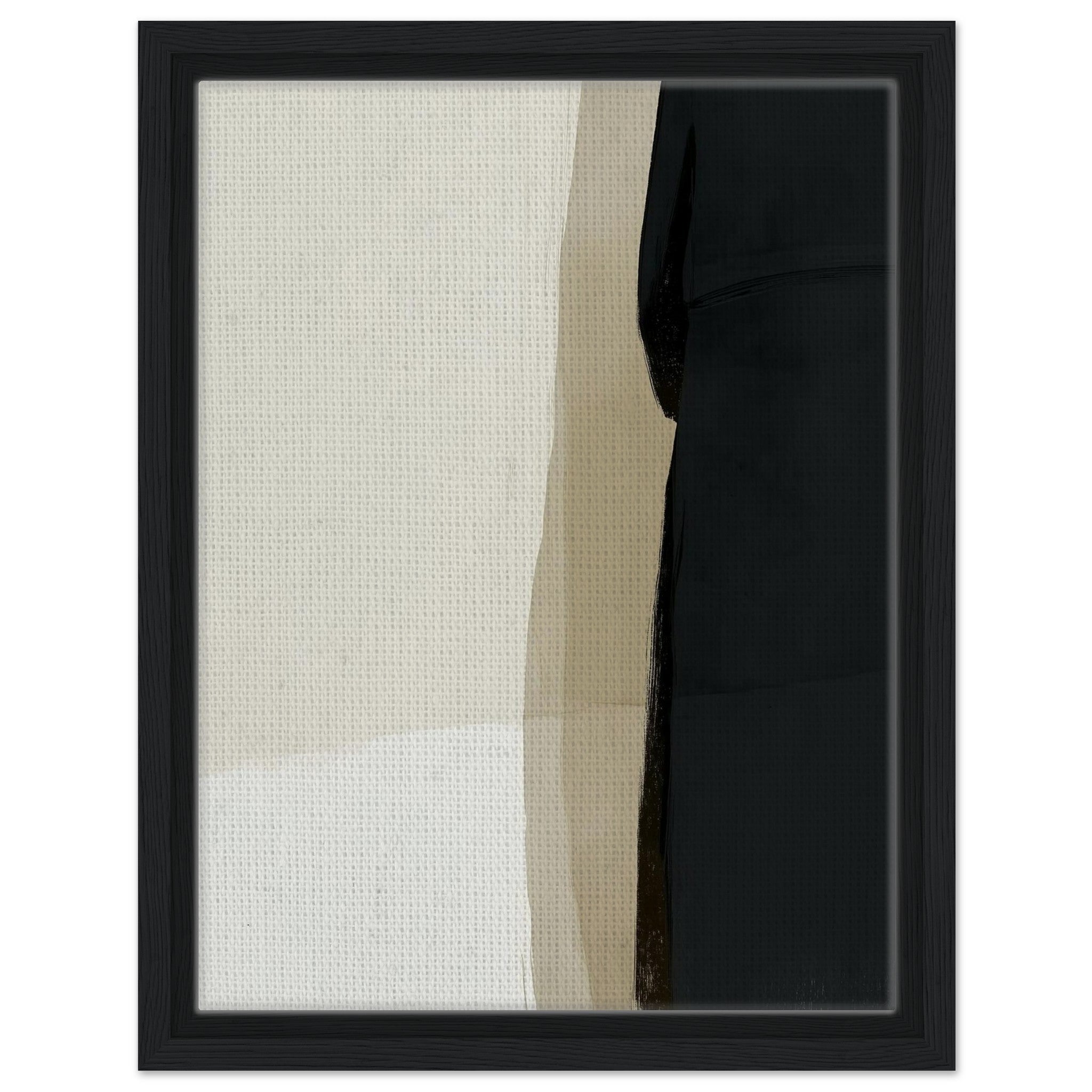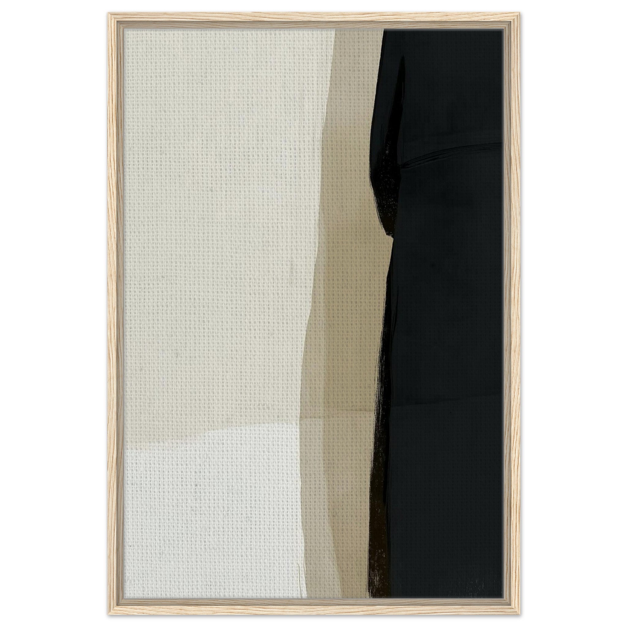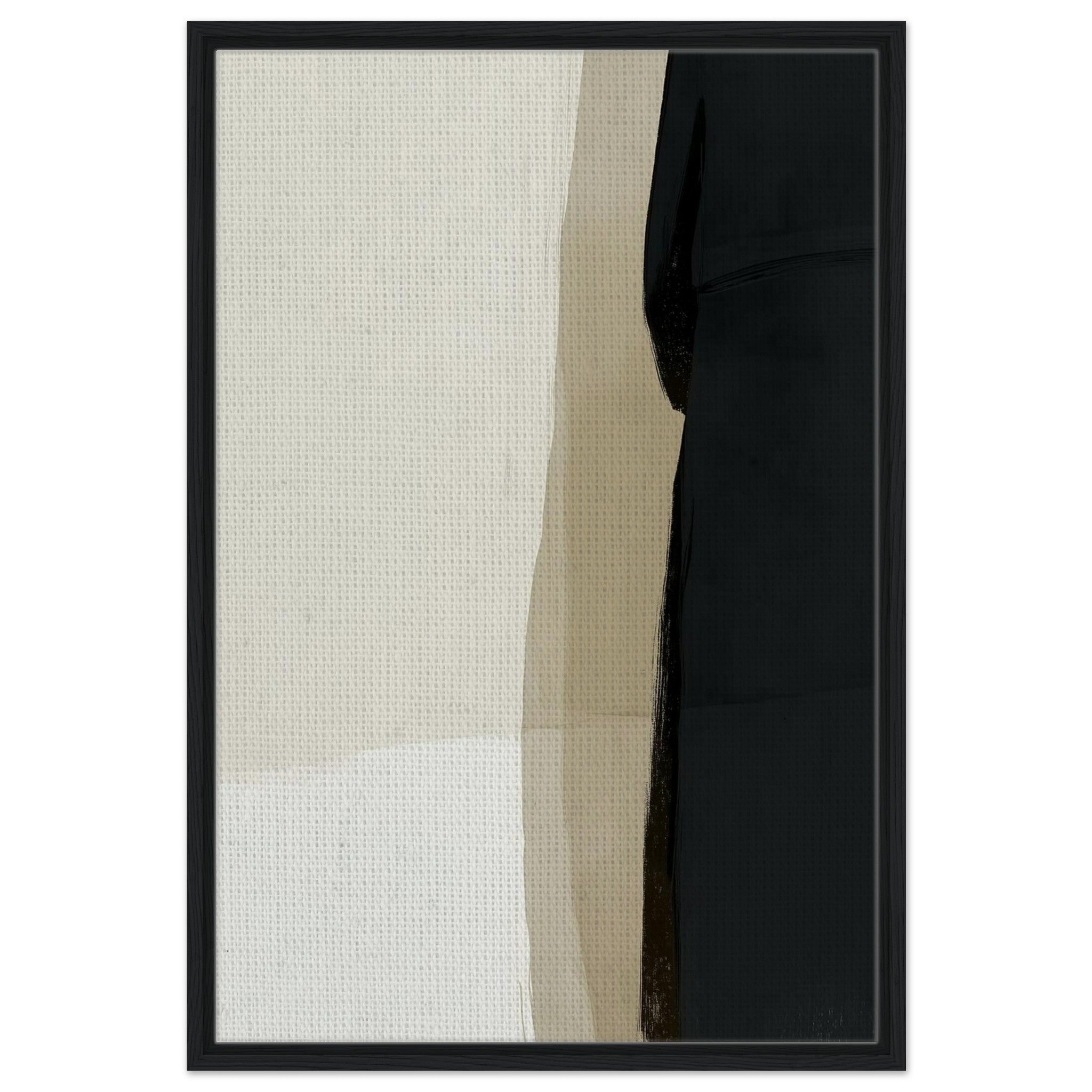 Das Calm Contrast Leinwandbild zeigt klare Flächen in Schwarz, Beige und Weiß. Die vertikale Teilung erinnert an Architektur oder eine abstrakte Landschaft. Mit seinen ruhigen Farben und starken Kontrasten bringt das Motiv Minimalismus und Eleganz in den Raum.