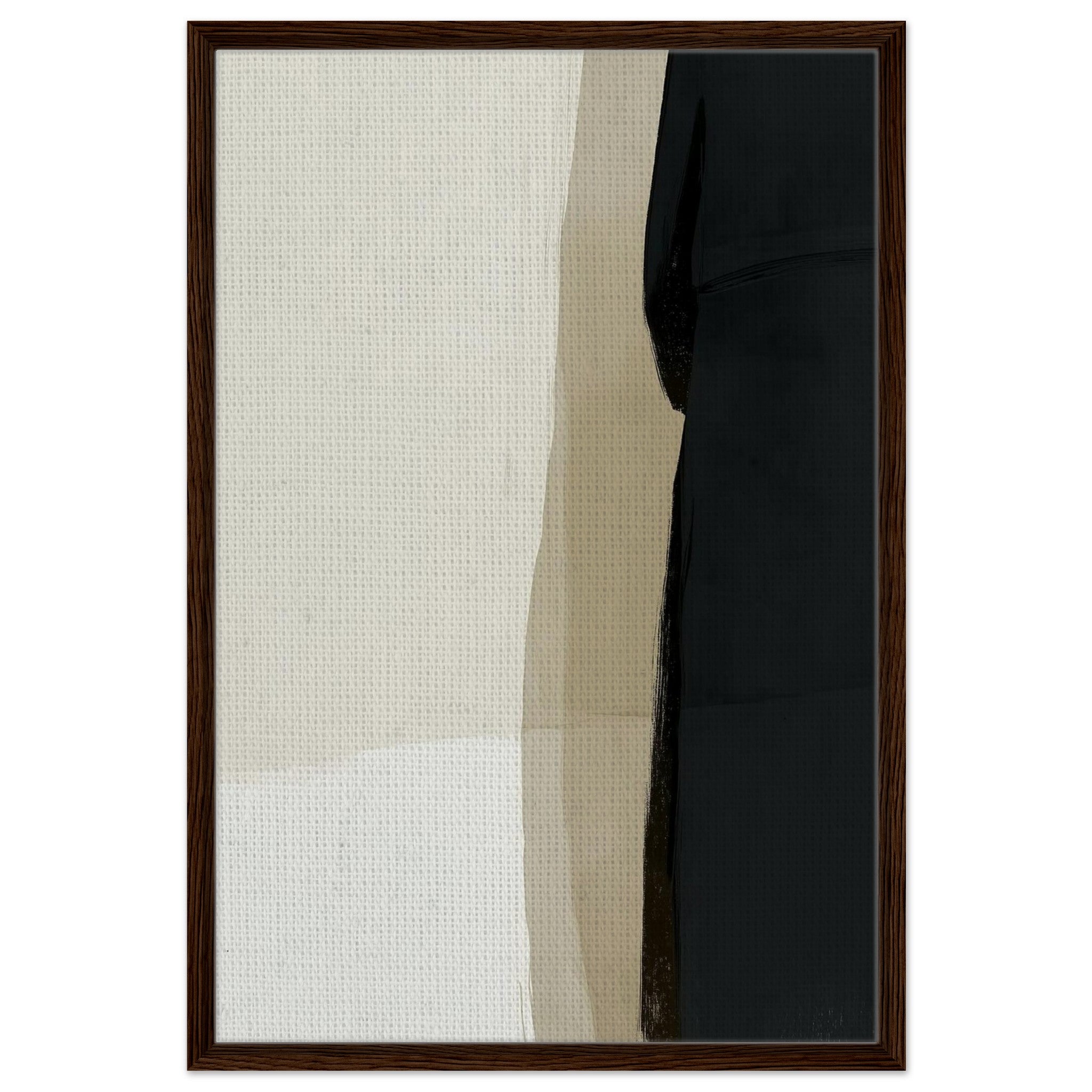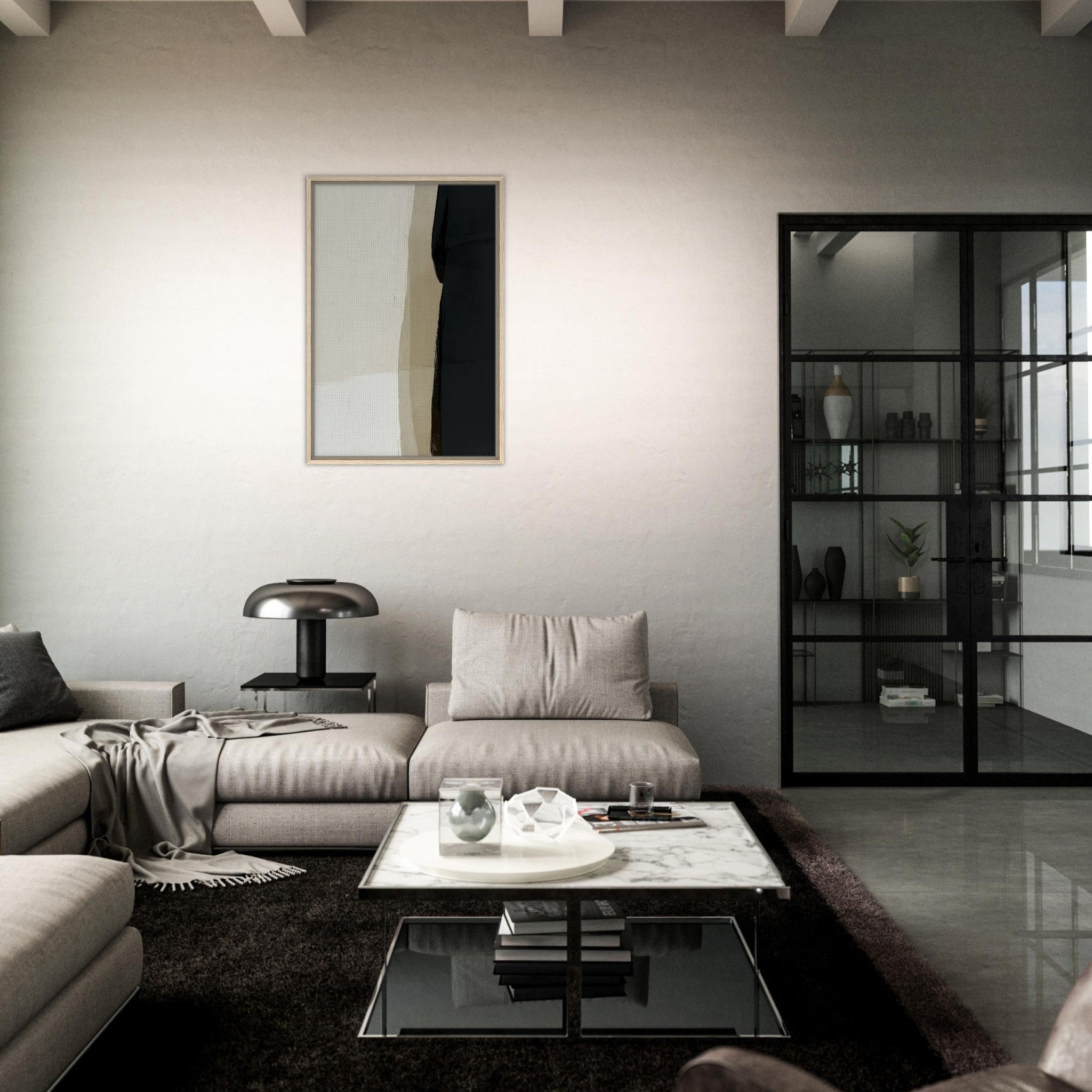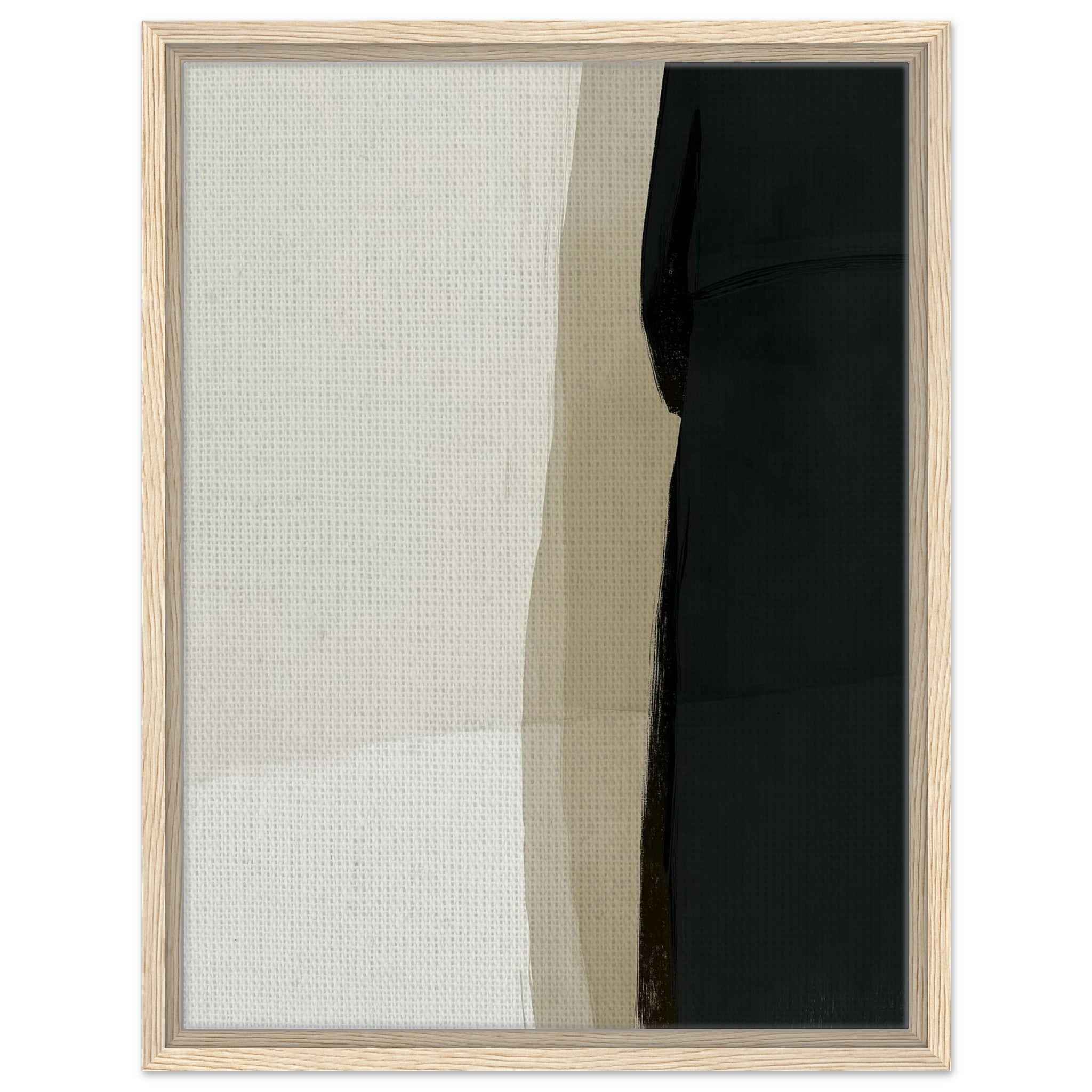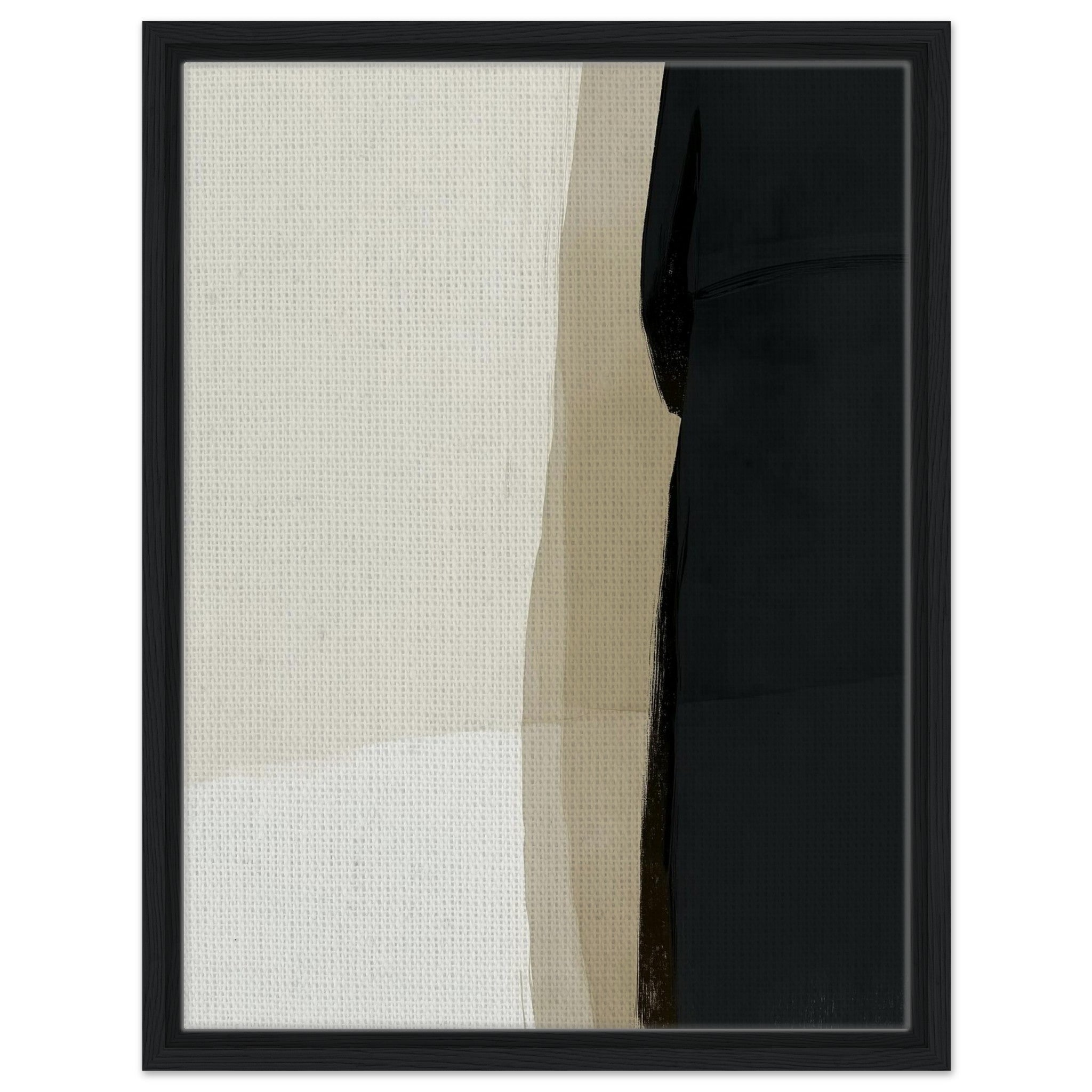 Das Calm Contrast Leinwandbild zeigt klare Flächen in Schwarz, Beige und Weiß. Die vertikale Teilung erinnert an Architektur oder eine abstrakte Landschaft. Mit seinen ruhigen Farben und starken Kontrasten bringt das Motiv Minimalismus und Eleganz in den Raum.
