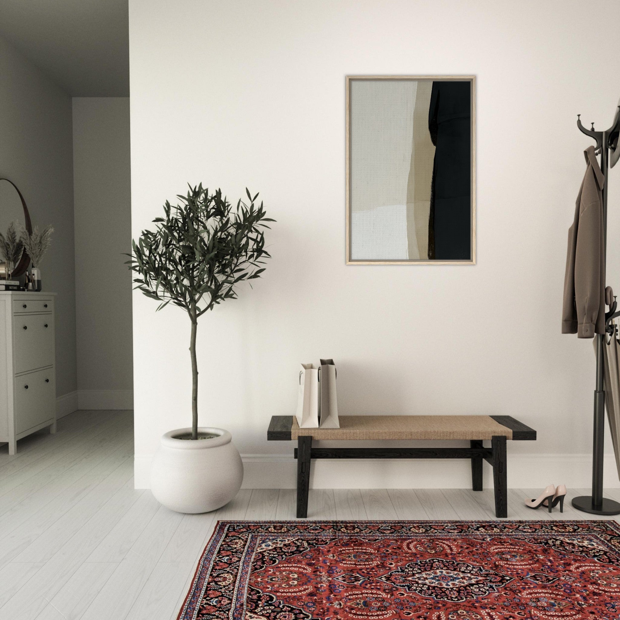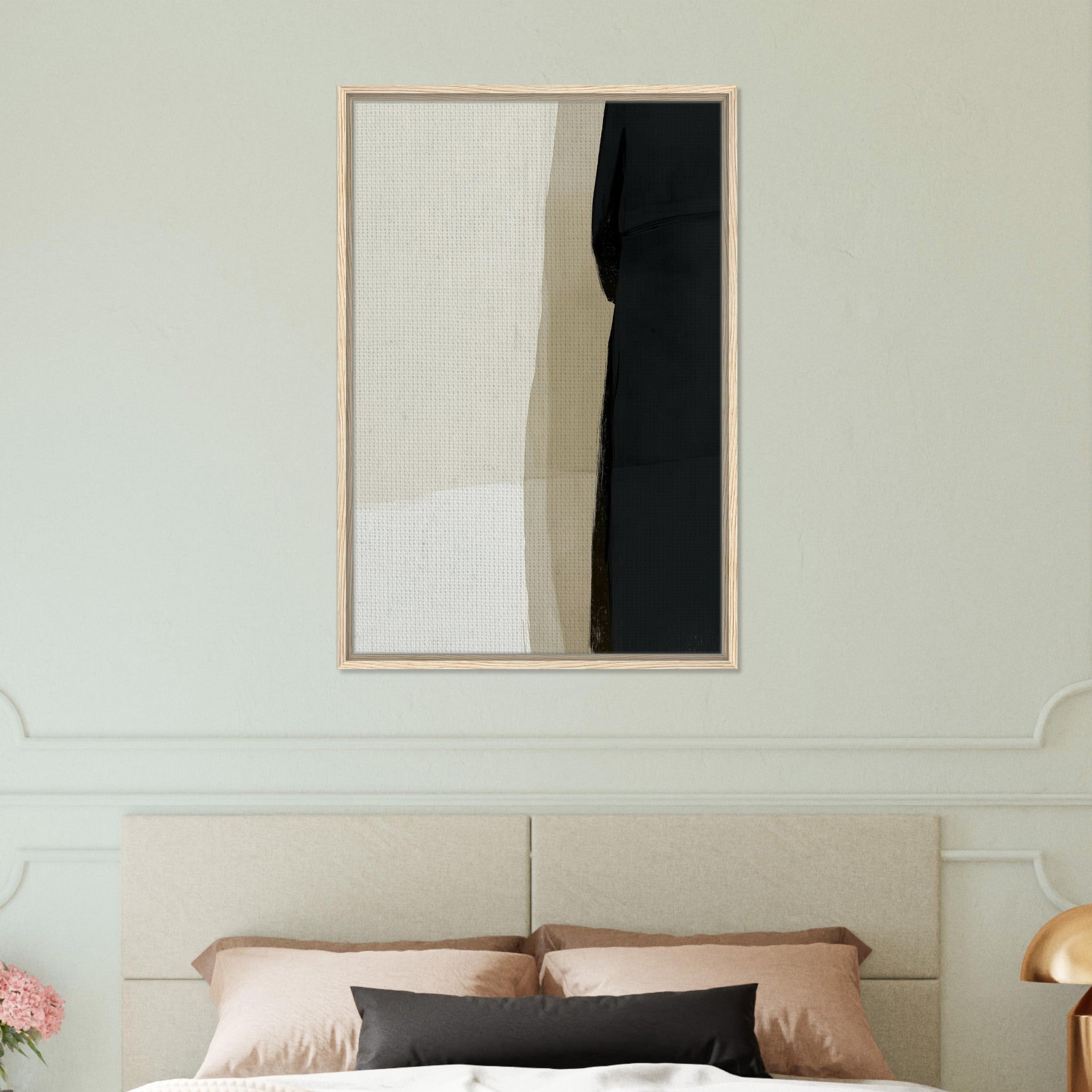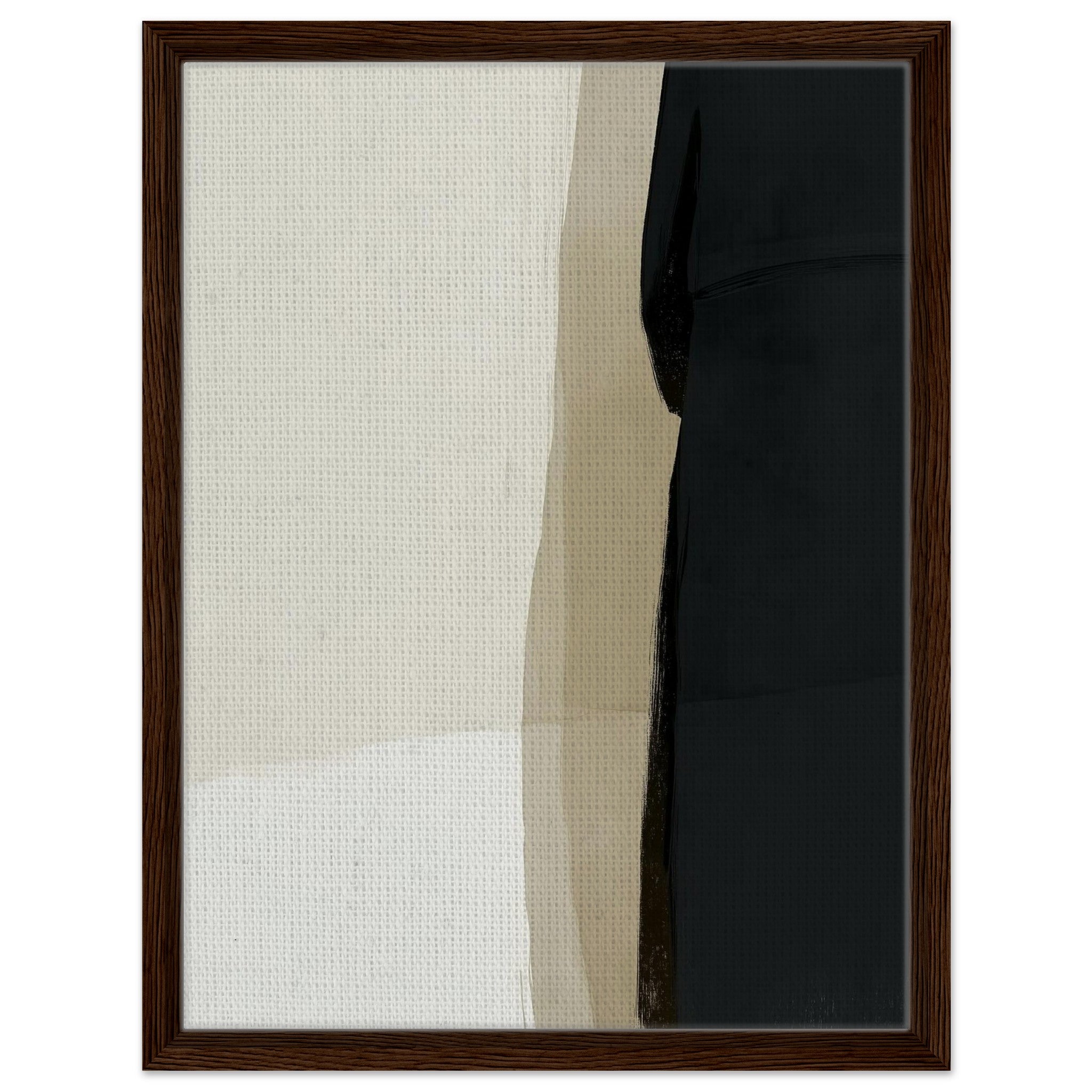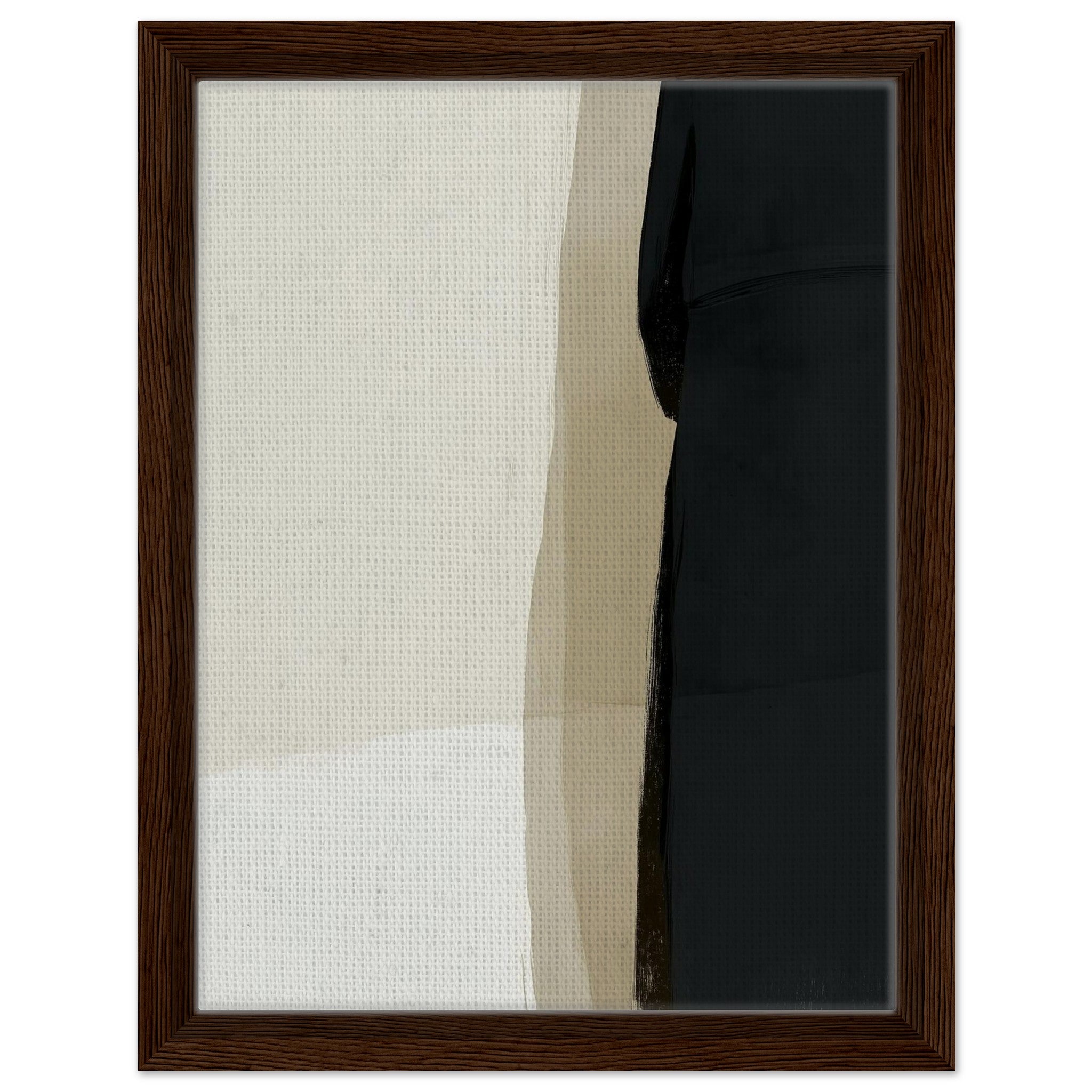 Das Calm Contrast Leinwandbild zeigt klare Flächen in Schwarz, Beige und Weiß. Die vertikale Teilung erinnert an Architektur oder eine abstrakte Landschaft. Mit seinen ruhigen Farben und starken Kontrasten bringt das Motiv Minimalismus und Eleganz in den Raum.
