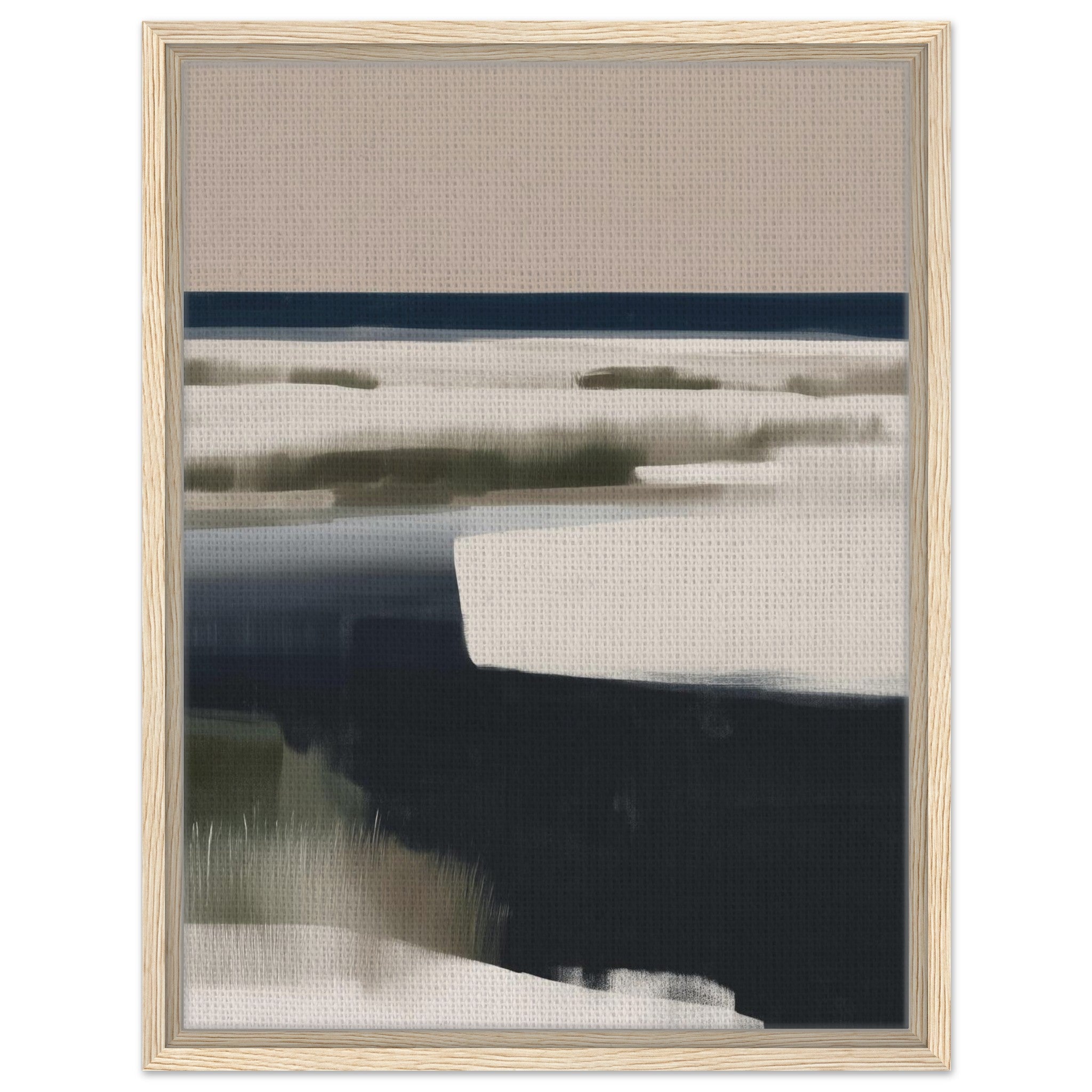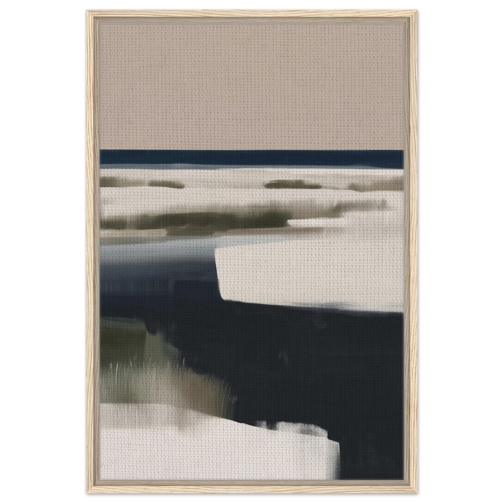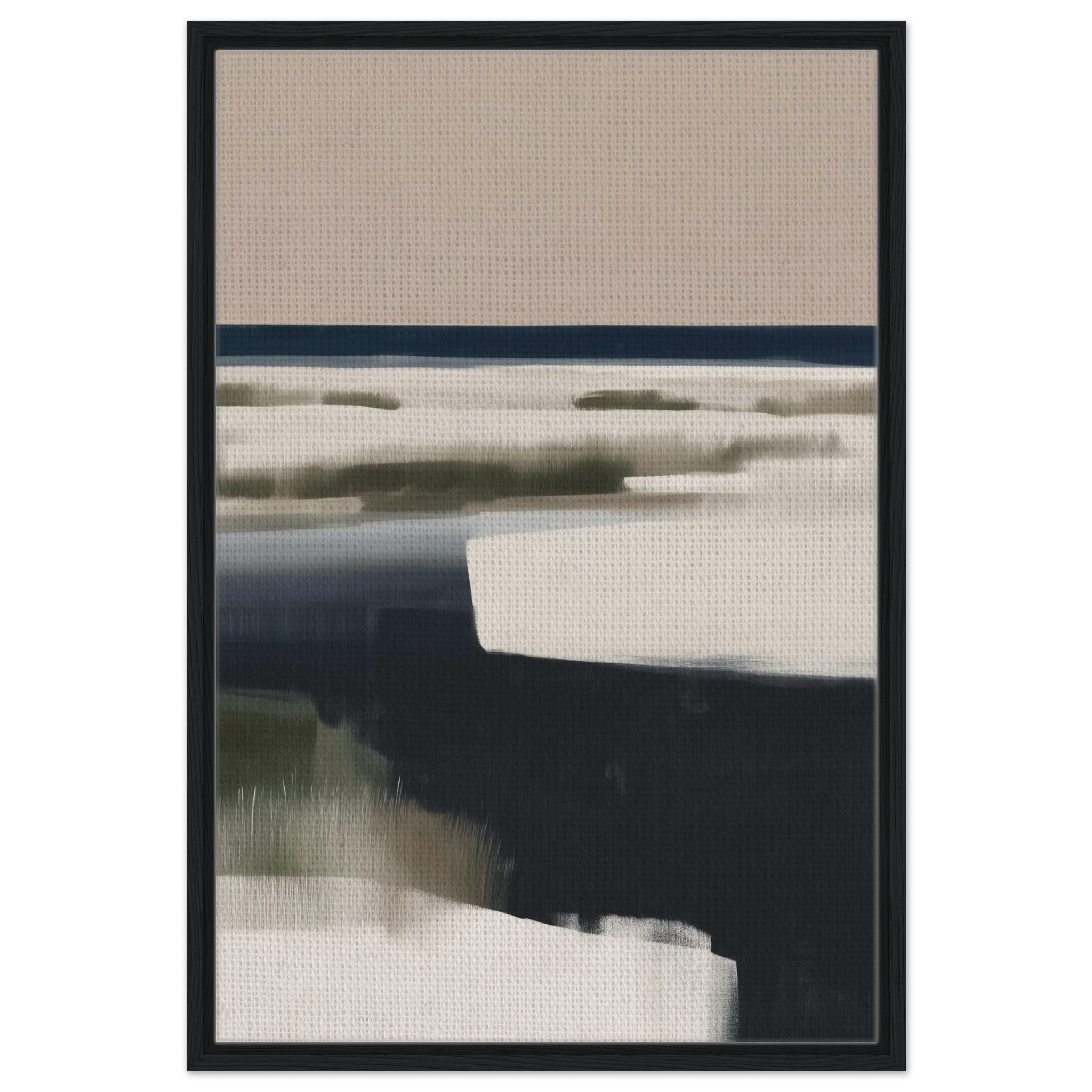 Das Frozen Horizon Leinwandbild zeigt abstrakte Flächen in Weiß, Schwarz und sanften Grautönen. Die horizontale Komposition erinnert an Eisfelder oder eine verschneite Küste. Dunkle Linien geben dem Motiv Tiefe und lassen es modern und atmosphärisch wirken.