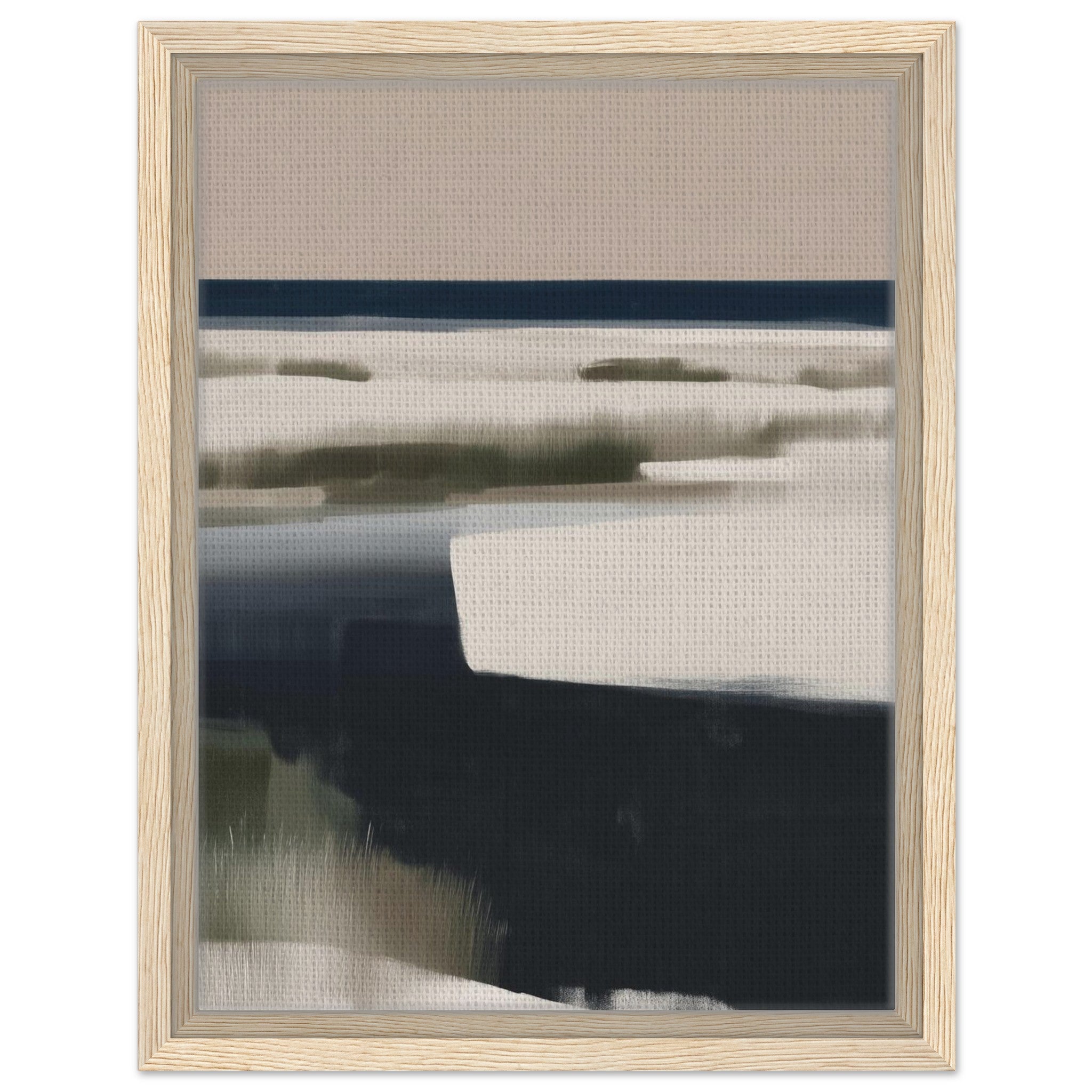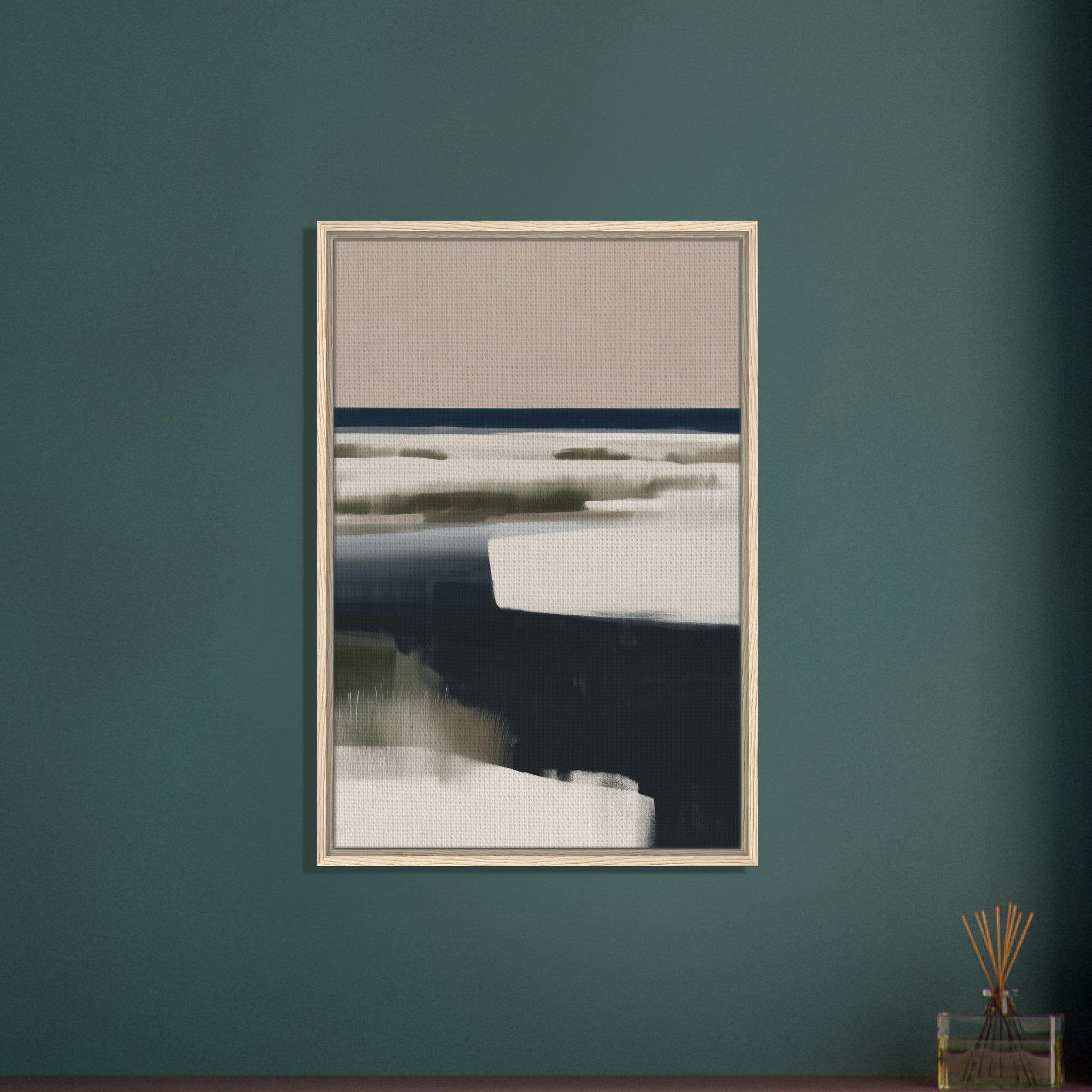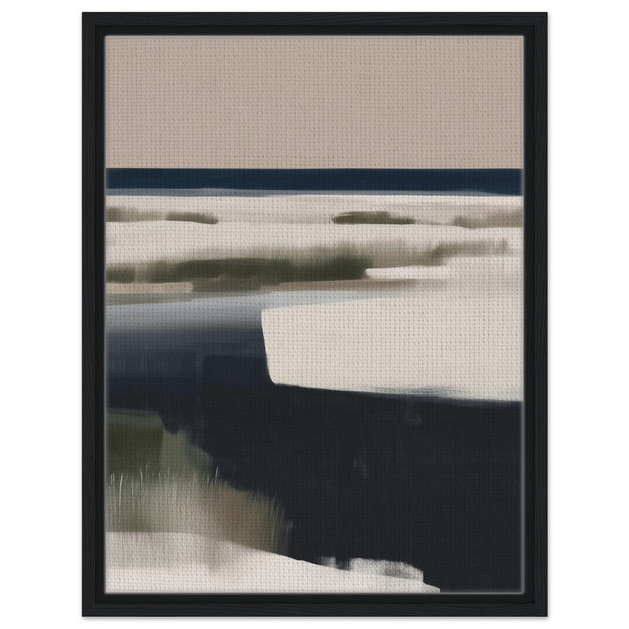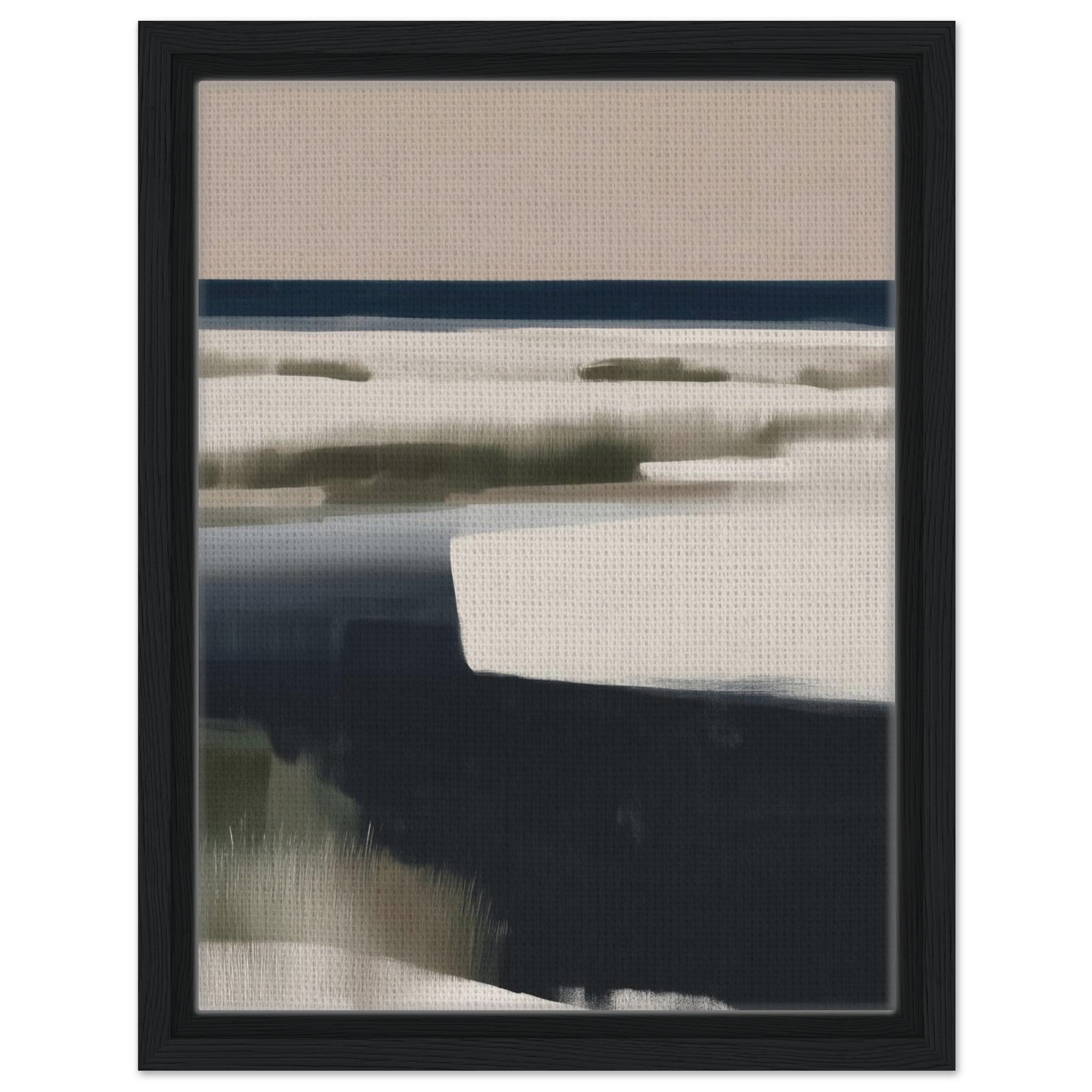 Das Frozen Horizon Leinwandbild zeigt abstrakte Flächen in Weiß, Schwarz und sanften Grautönen. Die horizontale Komposition erinnert an Eisfelder oder eine verschneite Küste. Dunkle Linien geben dem Motiv Tiefe und lassen es modern und atmosphärisch wirken.