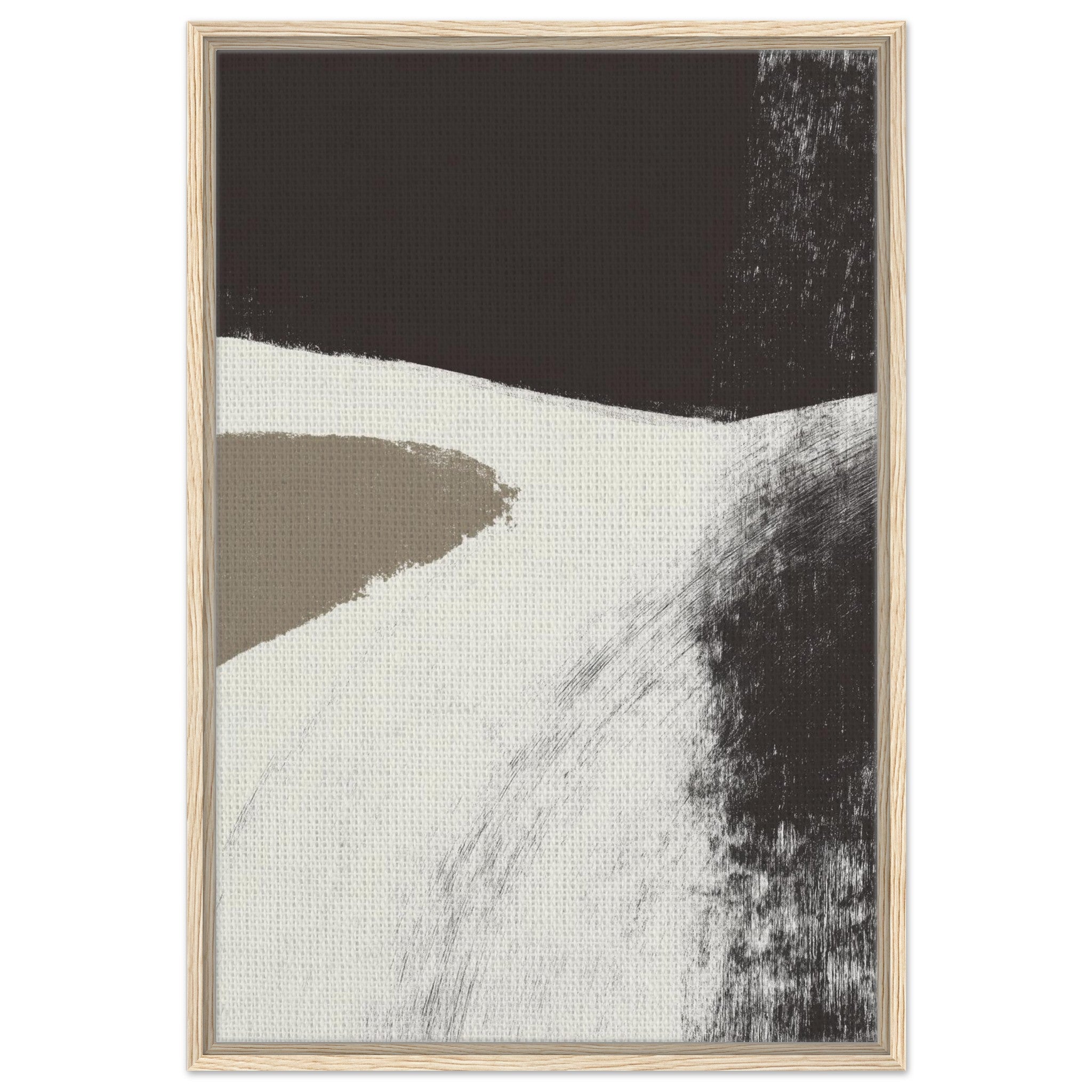 Das Lunar Flow Leinwandbild zeigt schwungvolle Formen in Schwarz, Weiß und Beige. Die dynamischen Flächen erinnern an Mondlicht, das sich über eine Landschaft ergießt. Mit klaren Kontrasten und weichen Übergängen wirkt das Motiv modern und atmosphärisch.