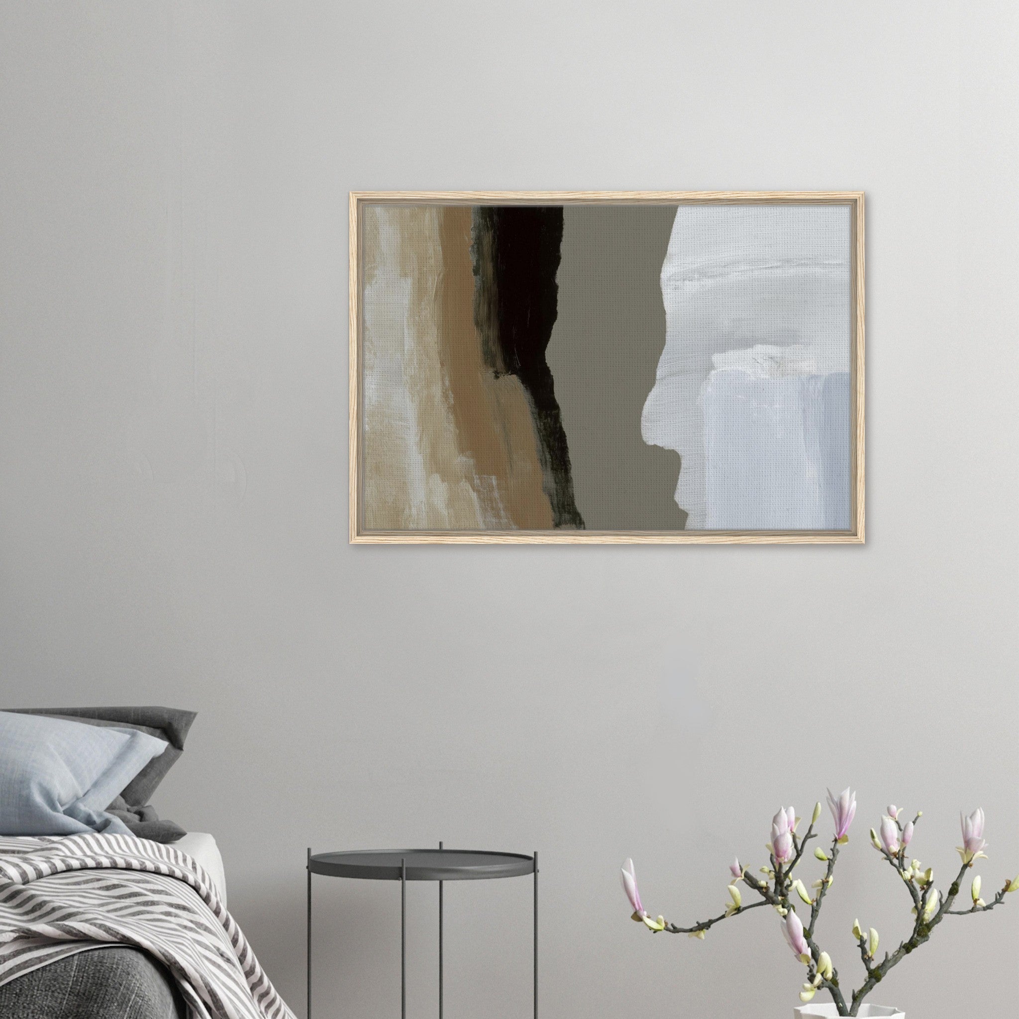 Kunstdruck auf Leinwand, gerahmt in einem schwebenden Rahmen.
