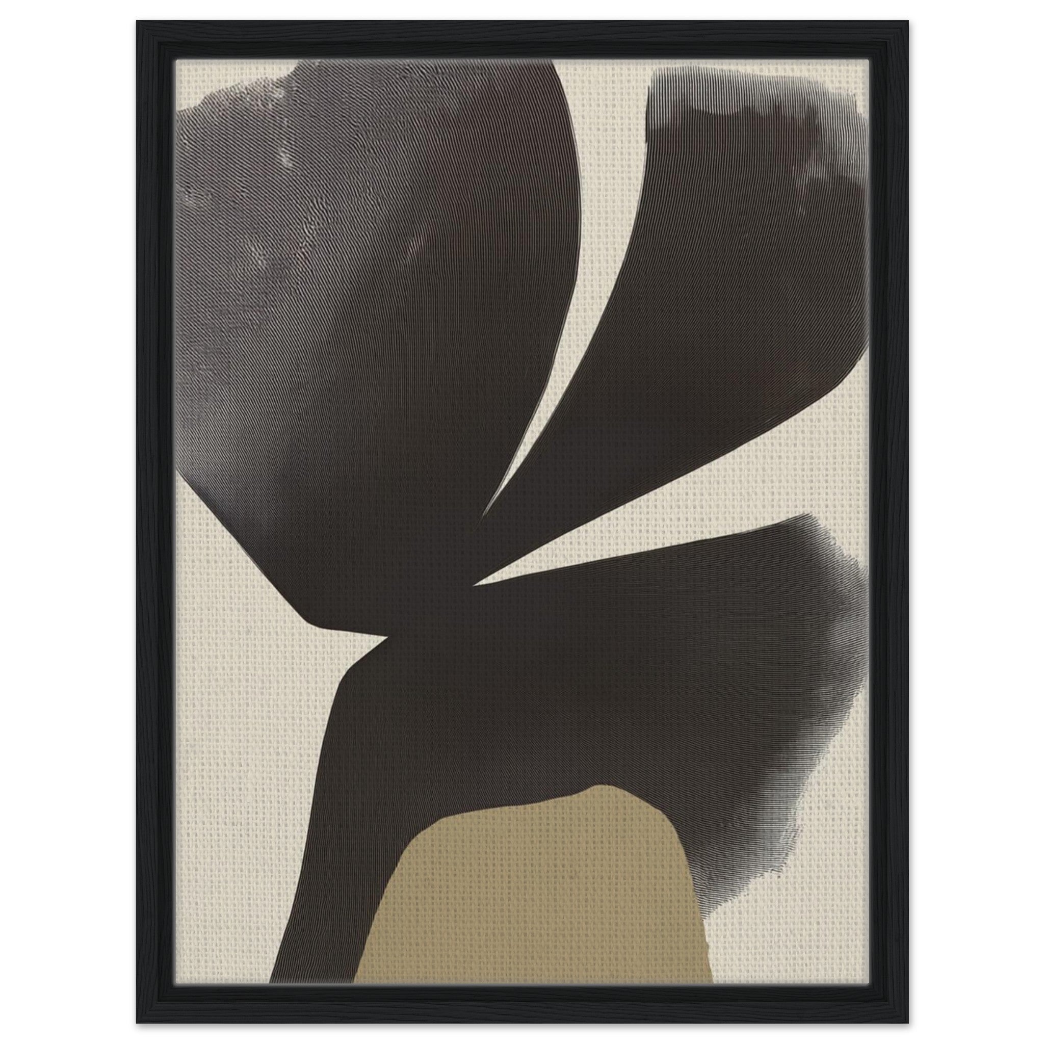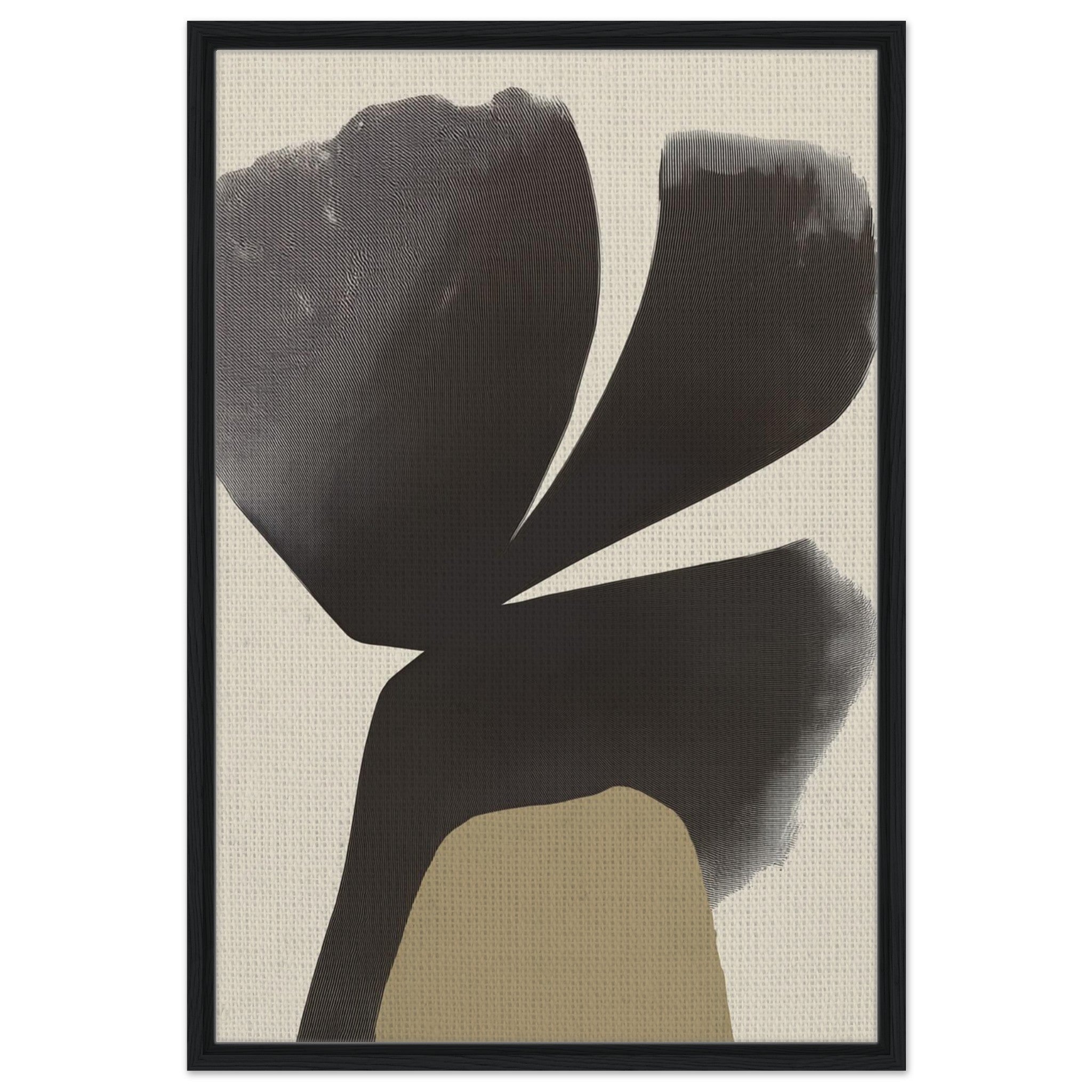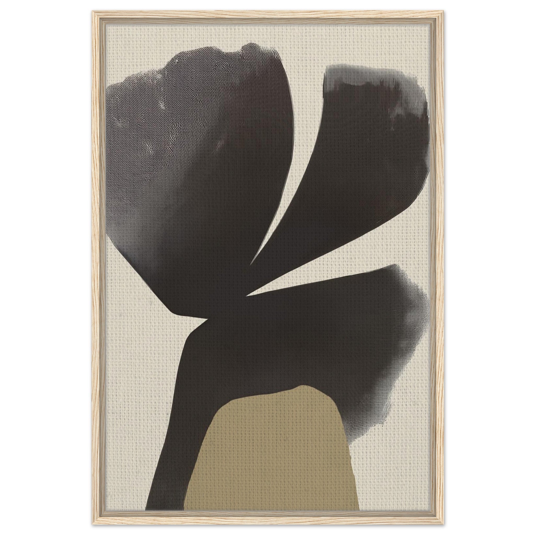 Das Abstract Petals Leinwandbild zeigt dunkle Blütenblätter in Schwarz und Grau, die sich vor einem hellen Hintergrund entfalten. Ein sanfter Braunton ergänzt das Motiv und bringt Wärme ins Gesamtbild. Die klaren Formen wirken modern, schlicht und zugleich organisch.