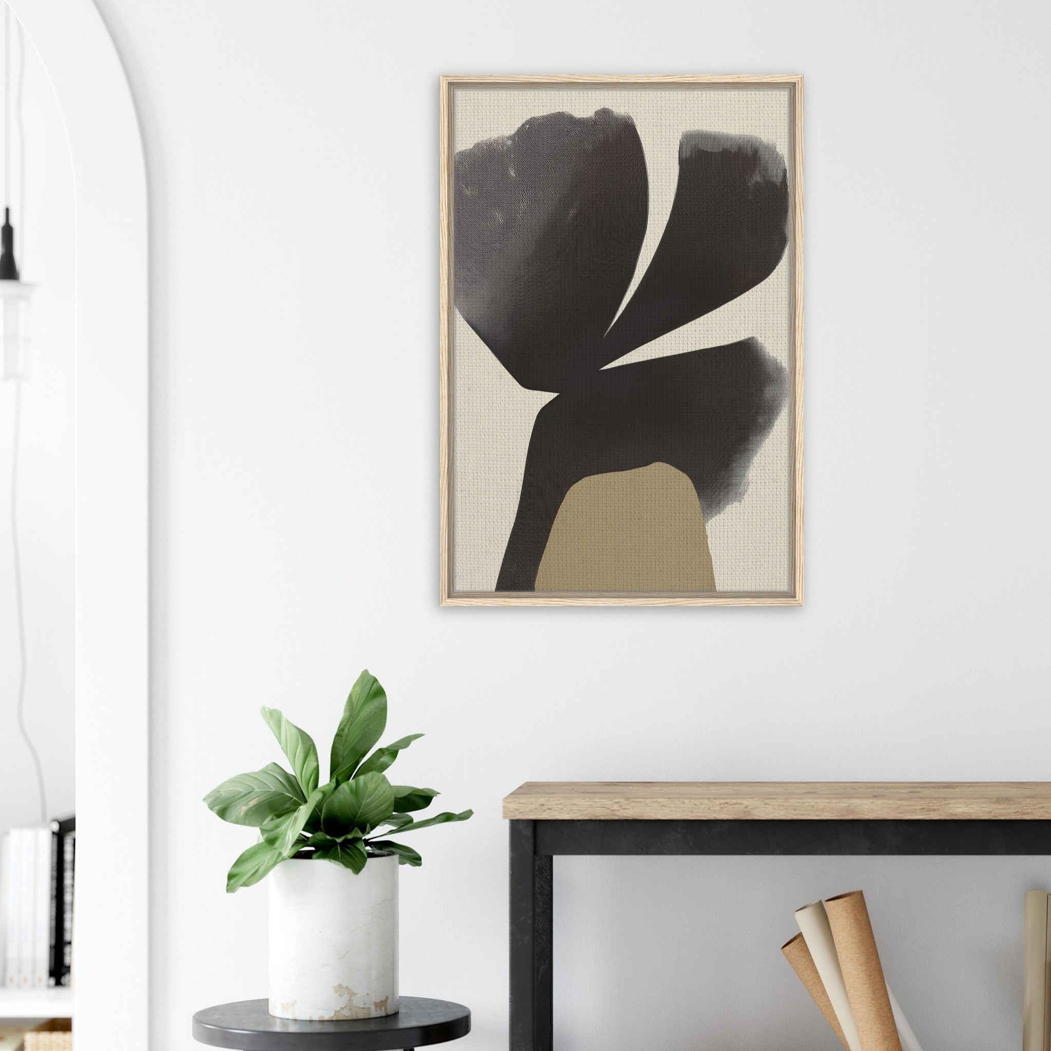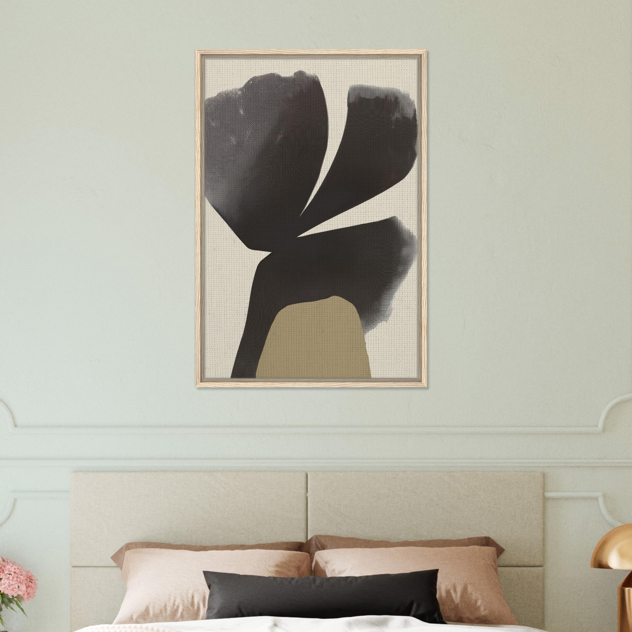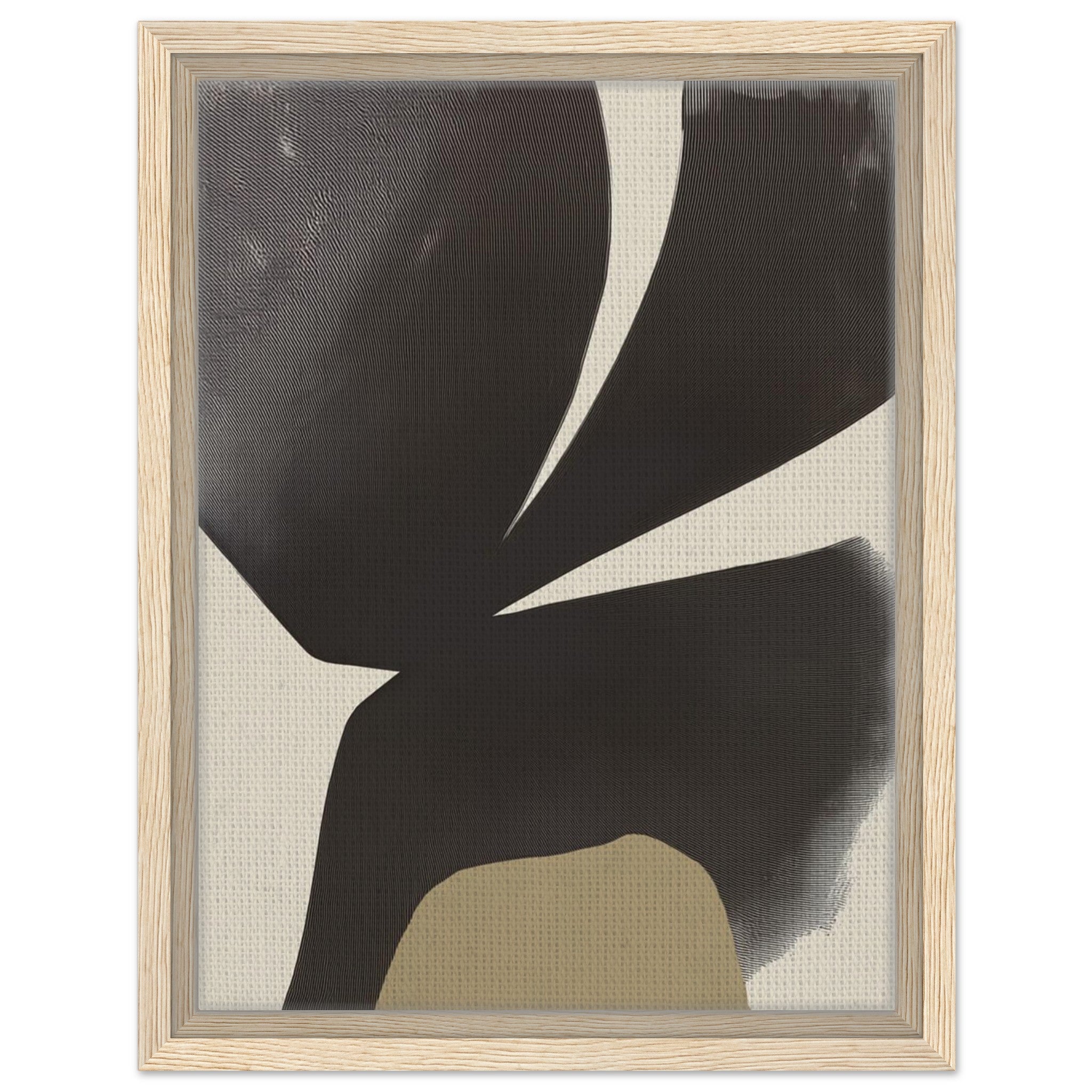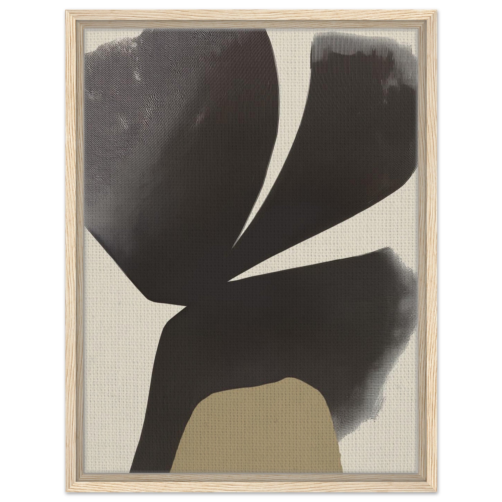 Das Abstract Petals Leinwandbild zeigt dunkle Blütenblätter in Schwarz und Grau, die sich vor einem hellen Hintergrund entfalten. Ein sanfter Braunton ergänzt das Motiv und bringt Wärme ins Gesamtbild. Die klaren Formen wirken modern, schlicht und zugleich organisch.