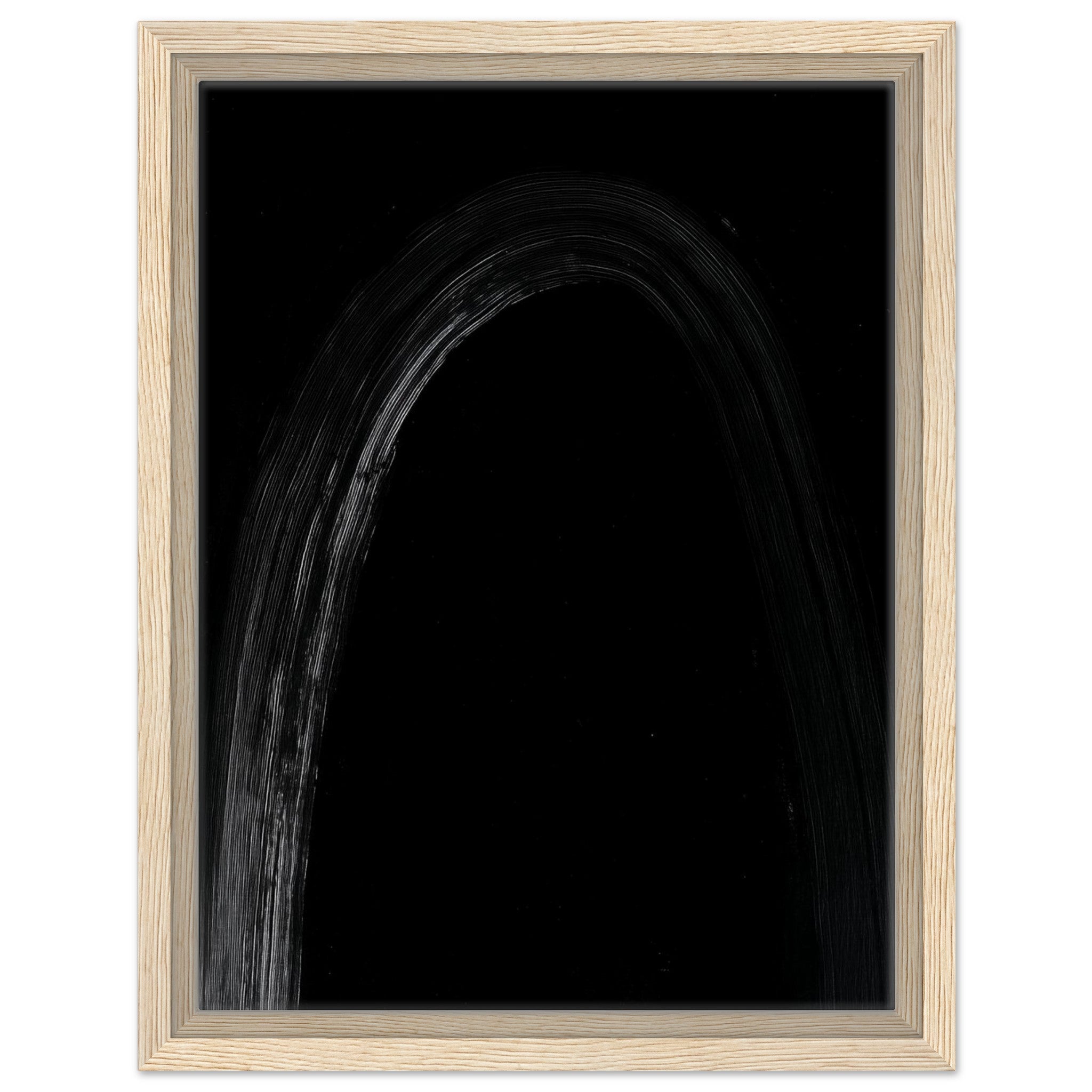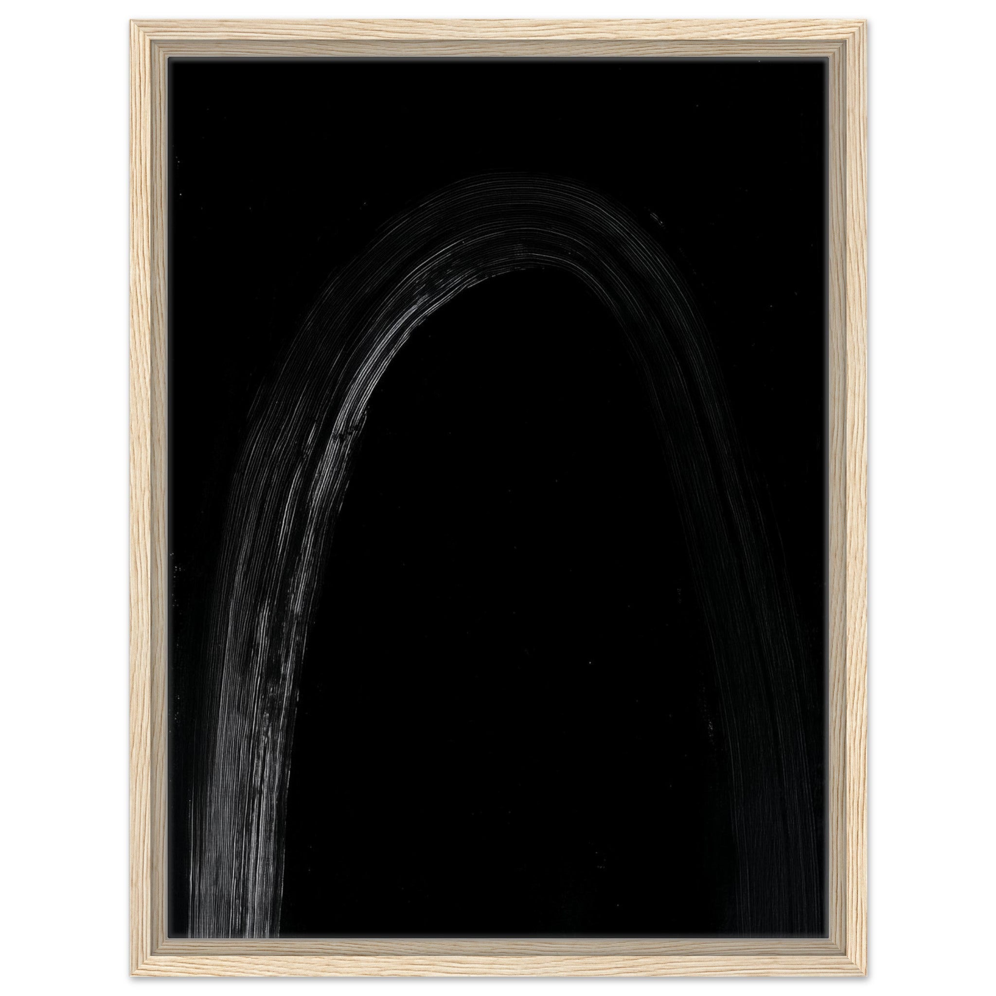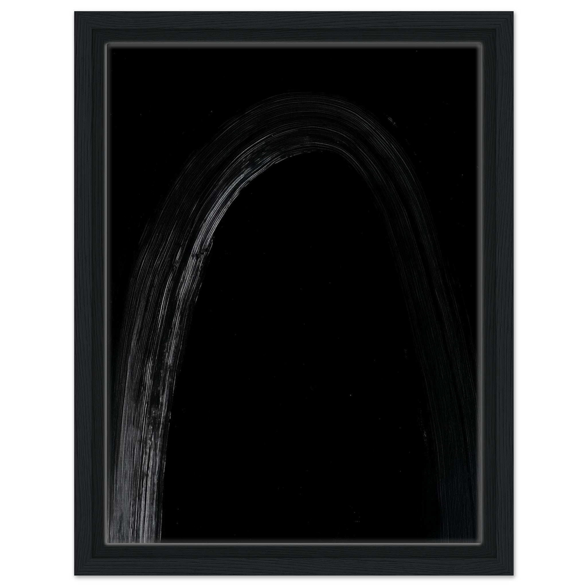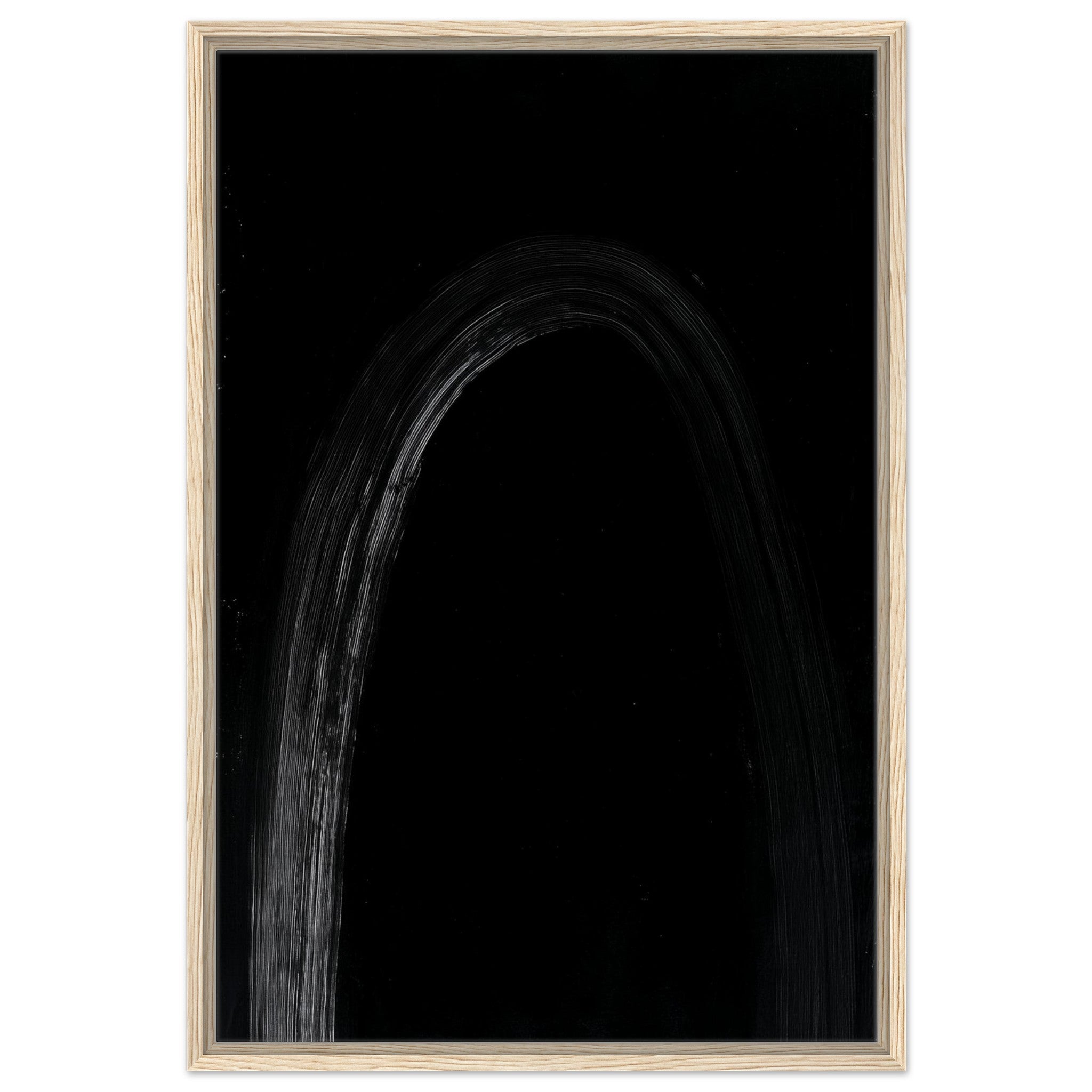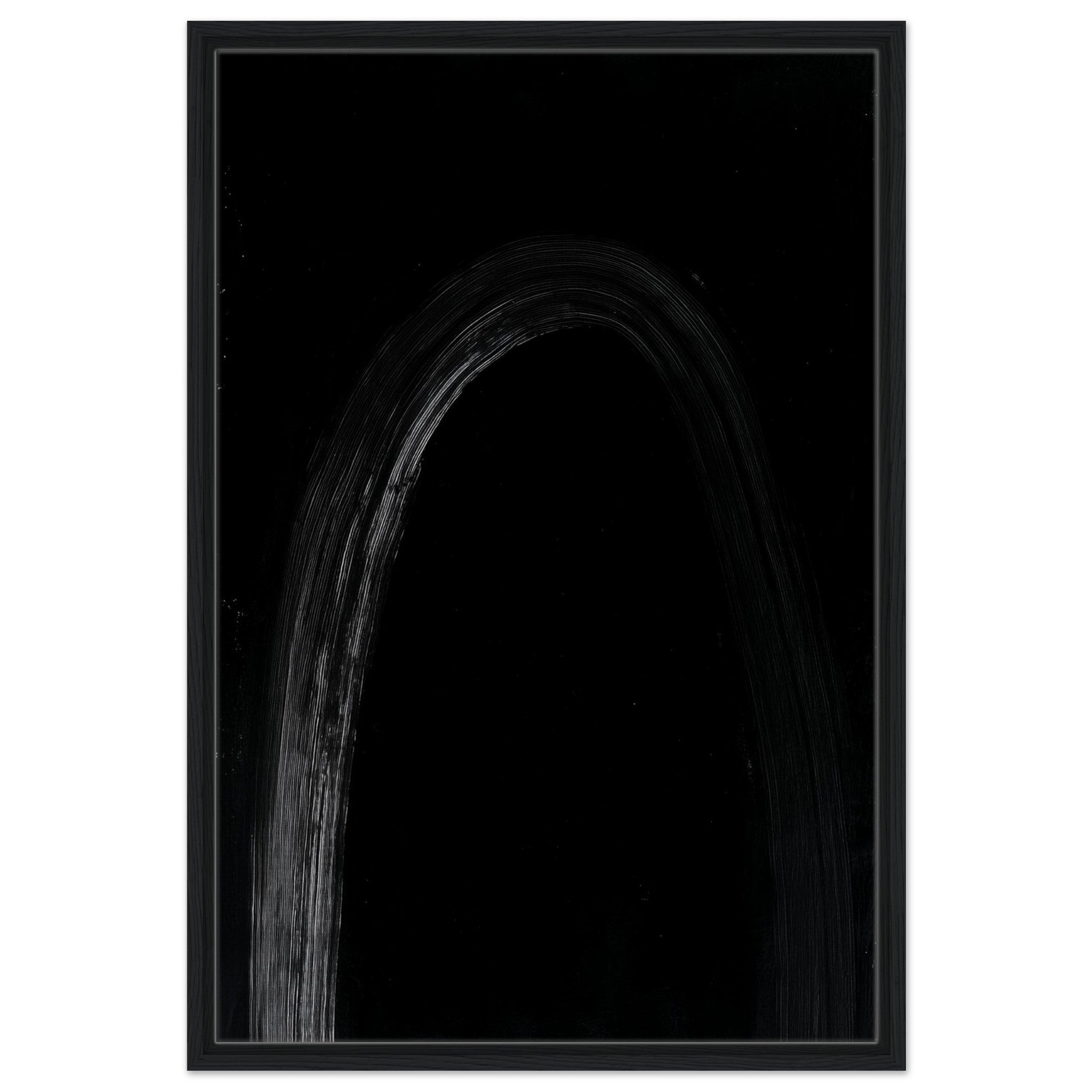 Das Dark Arc Leinwandbild zeigt einen kraftvollen Bogen in Schwarz auf tiefem Hintergrund. Der schwungvolle Pinselstrich wirkt roh, modern und geheimnisvoll. Das reduzierte Design lädt zur eigenen Interpretation ein - ob als Symbol für Stärke, Übergang oder innere Ruhe.