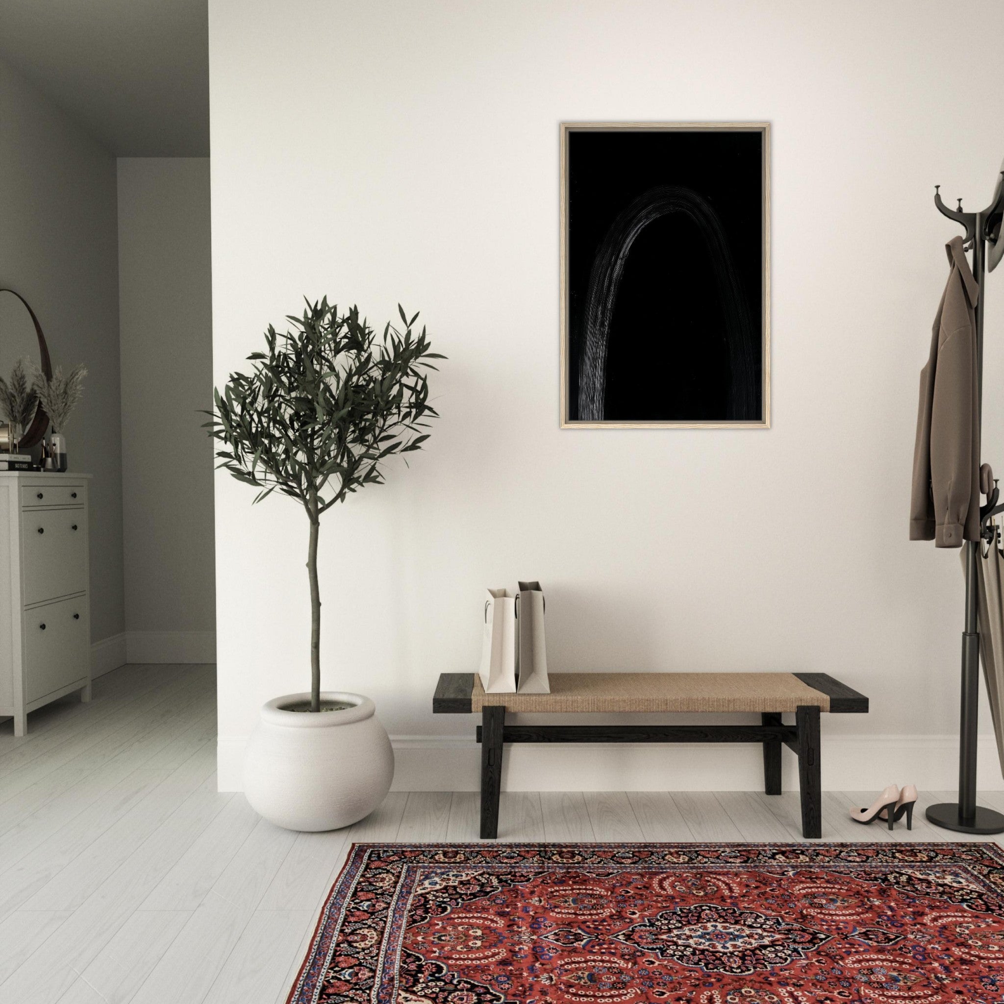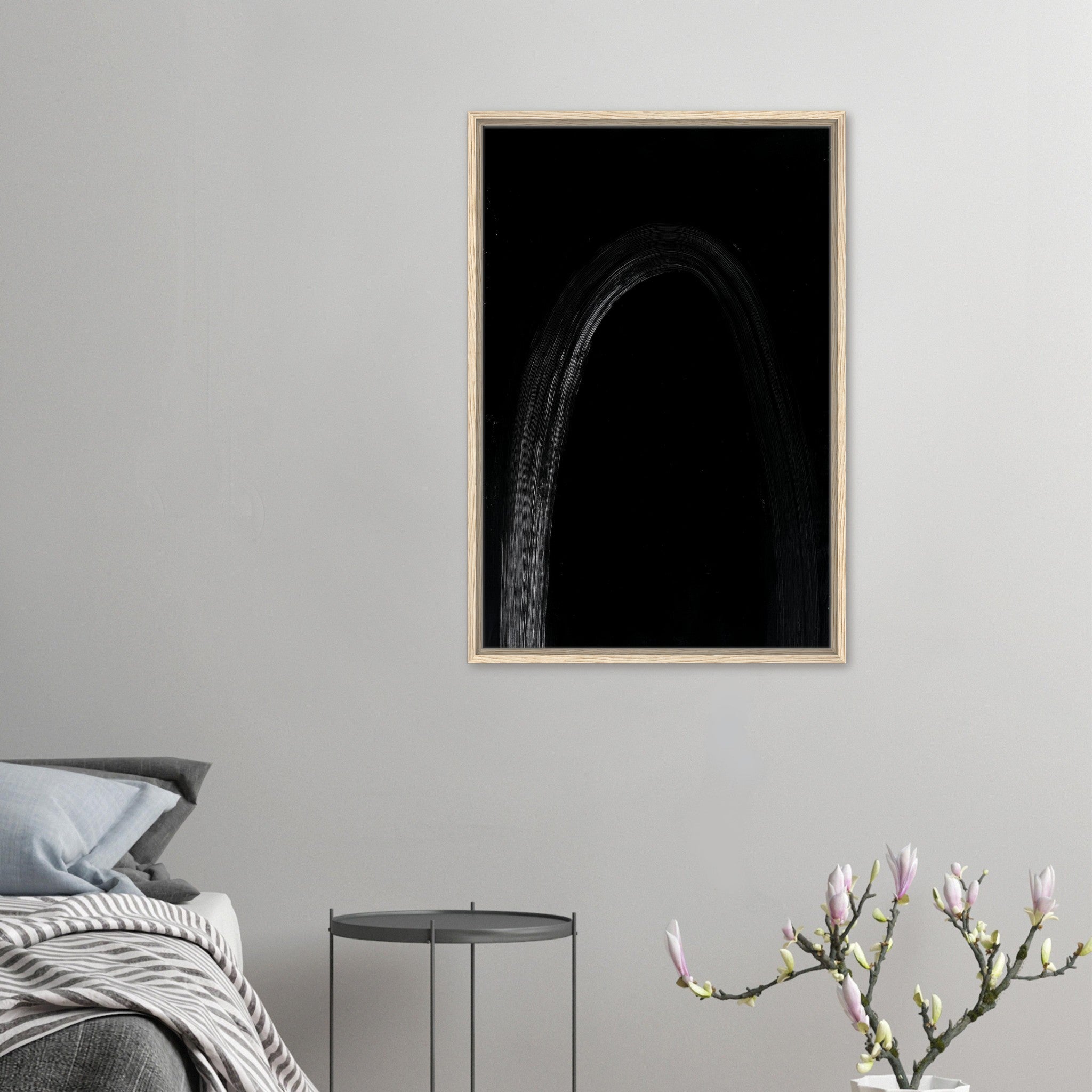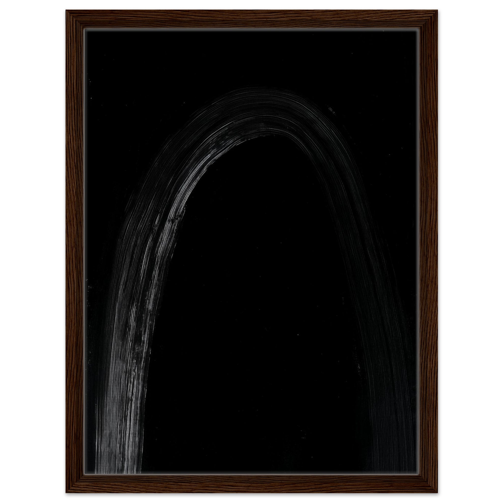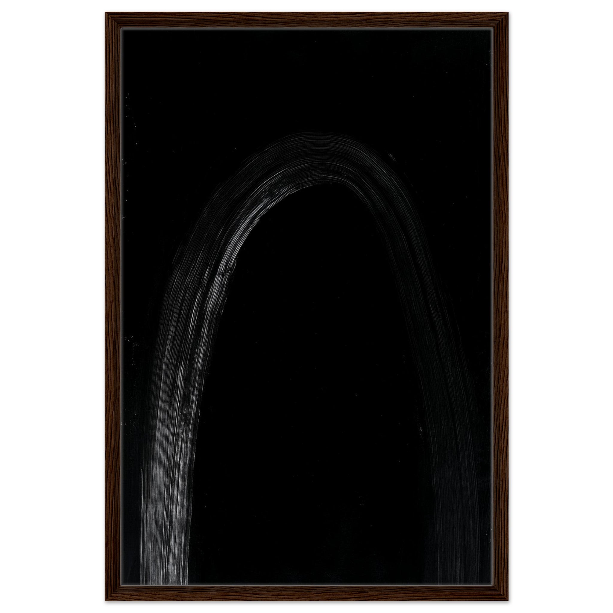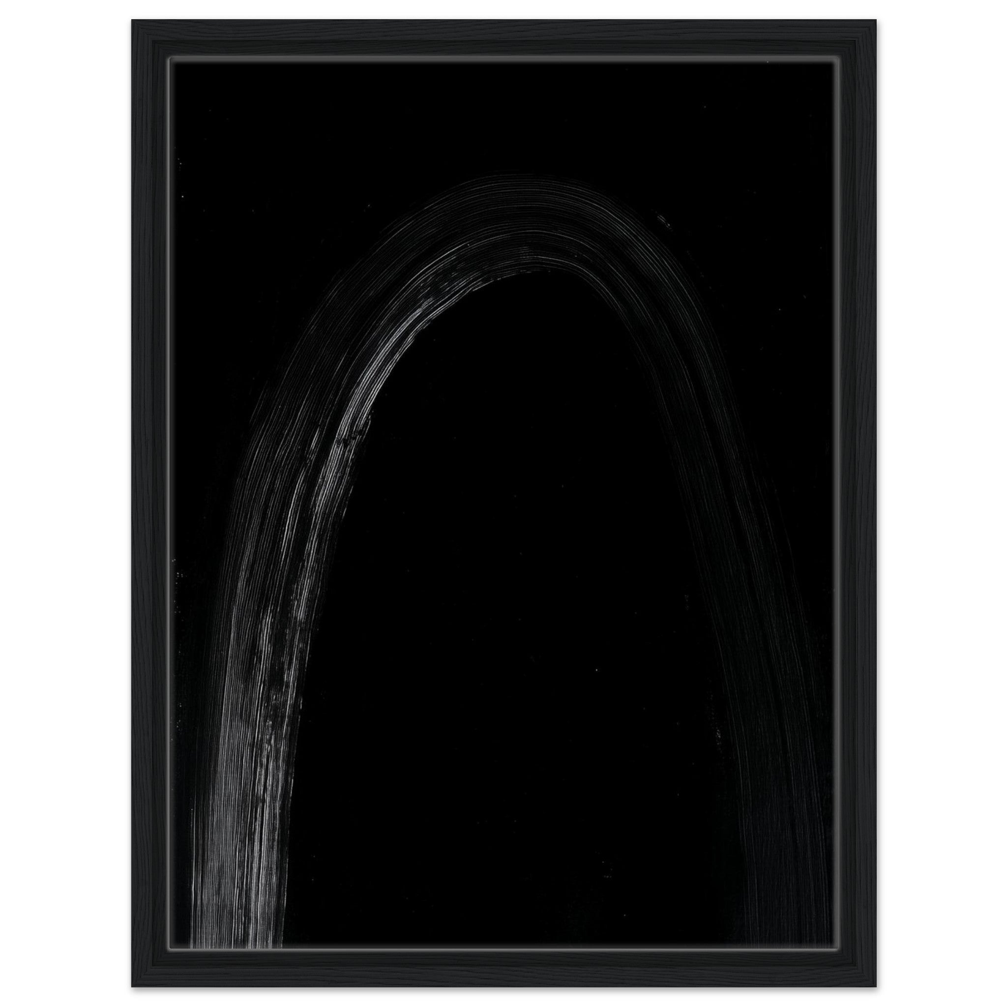 Das Dark Arc Leinwandbild zeigt einen kraftvollen Bogen in Schwarz auf tiefem Hintergrund. Der schwungvolle Pinselstrich wirkt roh, modern und geheimnisvoll. Das reduzierte Design lädt zur eigenen Interpretation ein - ob als Symbol für Stärke, Übergang oder innere Ruhe.