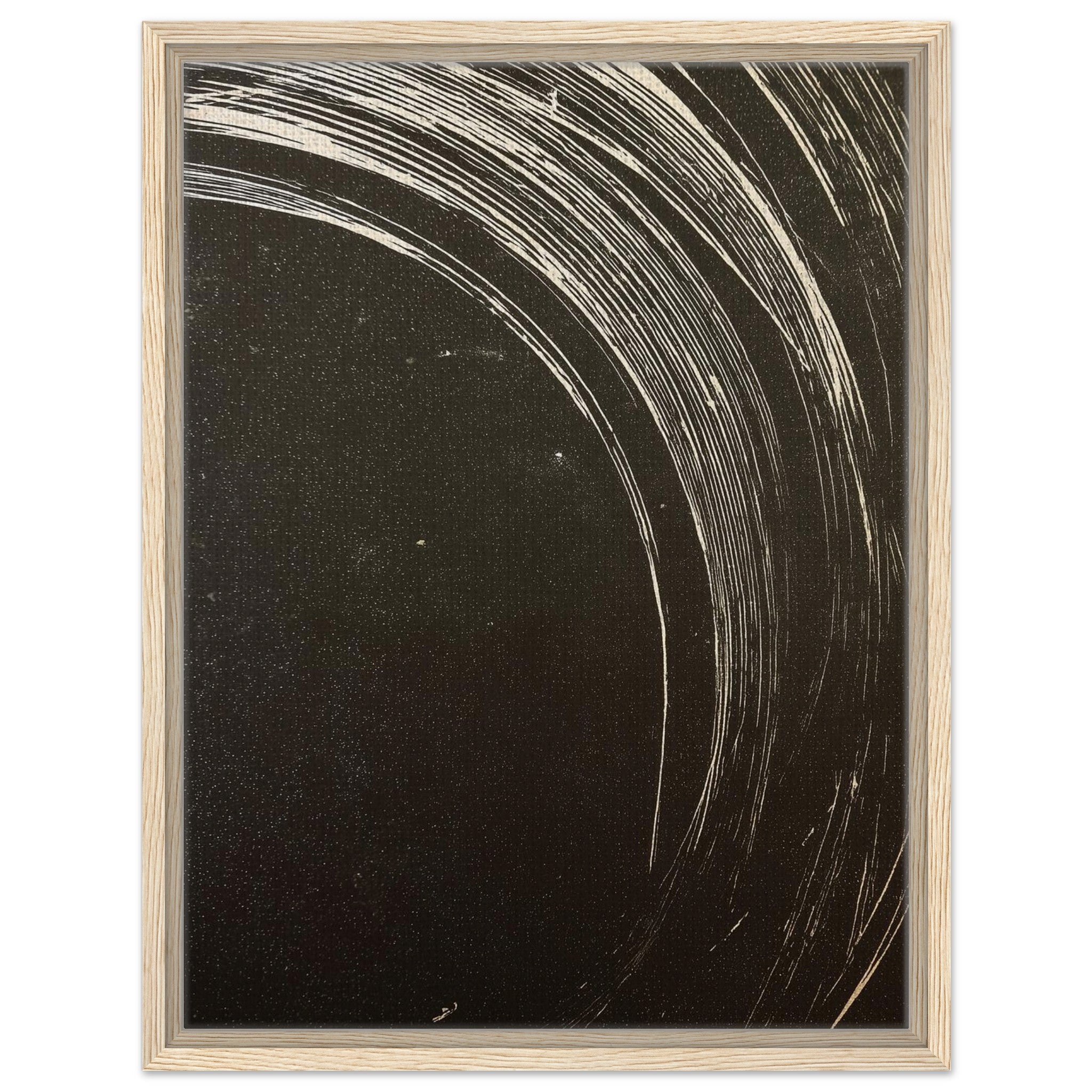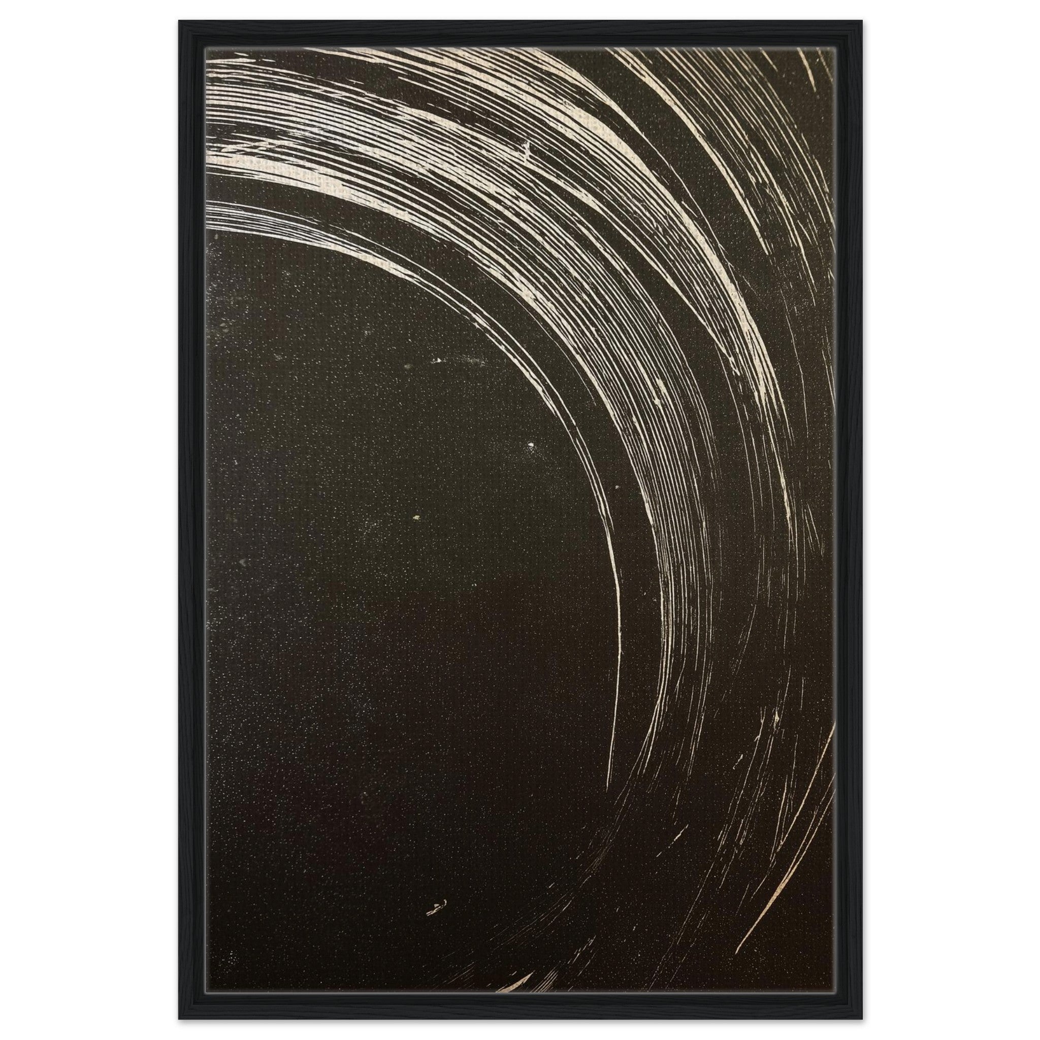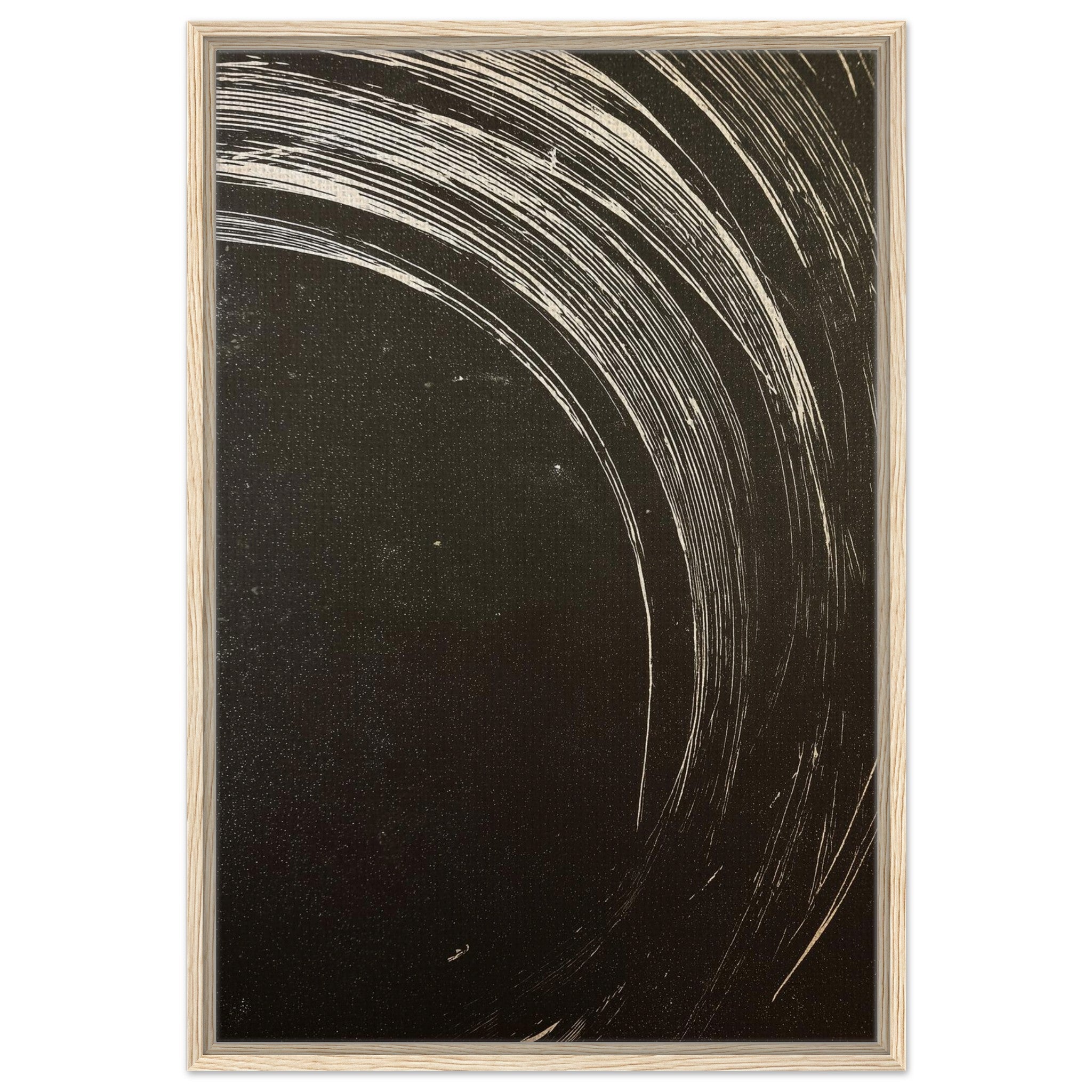 Das Eclipse Flow Leinwandbild besticht durch seine starke Wirkung in Schwarz und Weiß. Geschwungene Linien ziehen sich wie Kreisbögen über den dunklen Hintergrund und erinnern an den Schwung einer Sonnenfinsternis oder die Bewegung von Licht im Schatten. Das abstrakte Motiv wirkt kraftvoll, modern und zugleich meditativ.