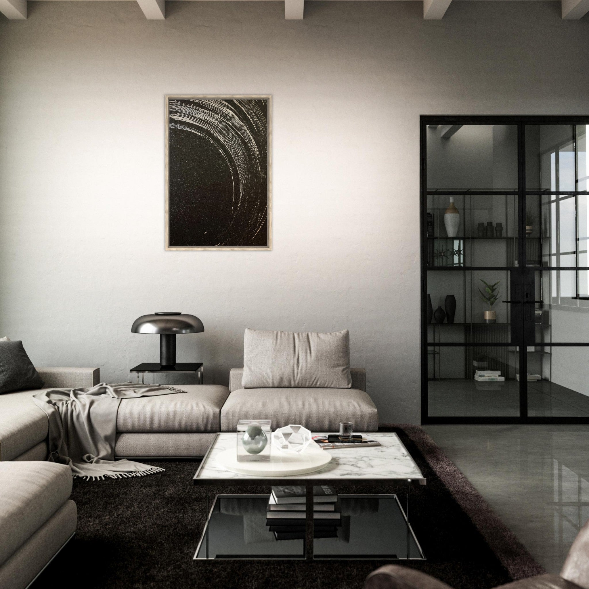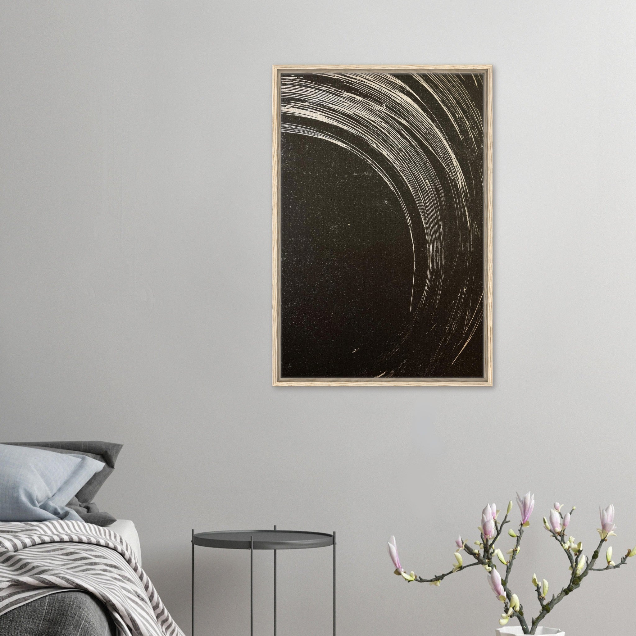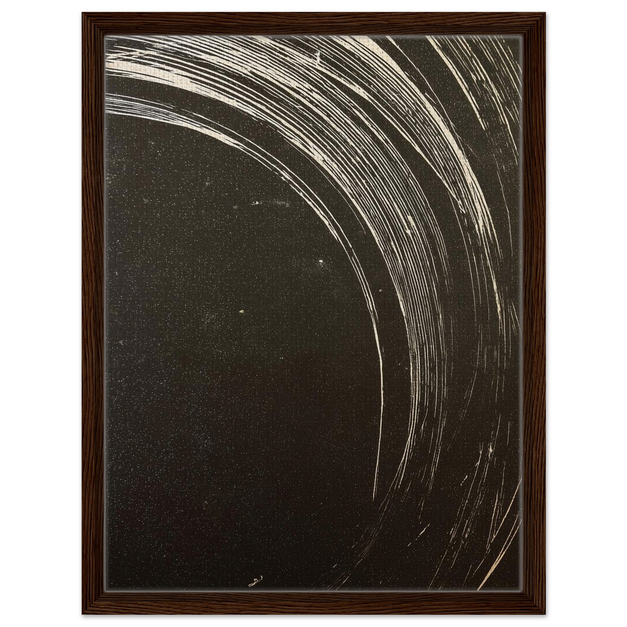 Das Eclipse Flow Leinwandbild besticht durch seine starke Wirkung in Schwarz und Weiß. Geschwungene Linien ziehen sich wie Kreisbögen über den dunklen Hintergrund und erinnern an den Schwung einer Sonnenfinsternis oder die Bewegung von Licht im Schatten. Das abstrakte Motiv wirkt kraftvoll, modern und zugleich meditativ.