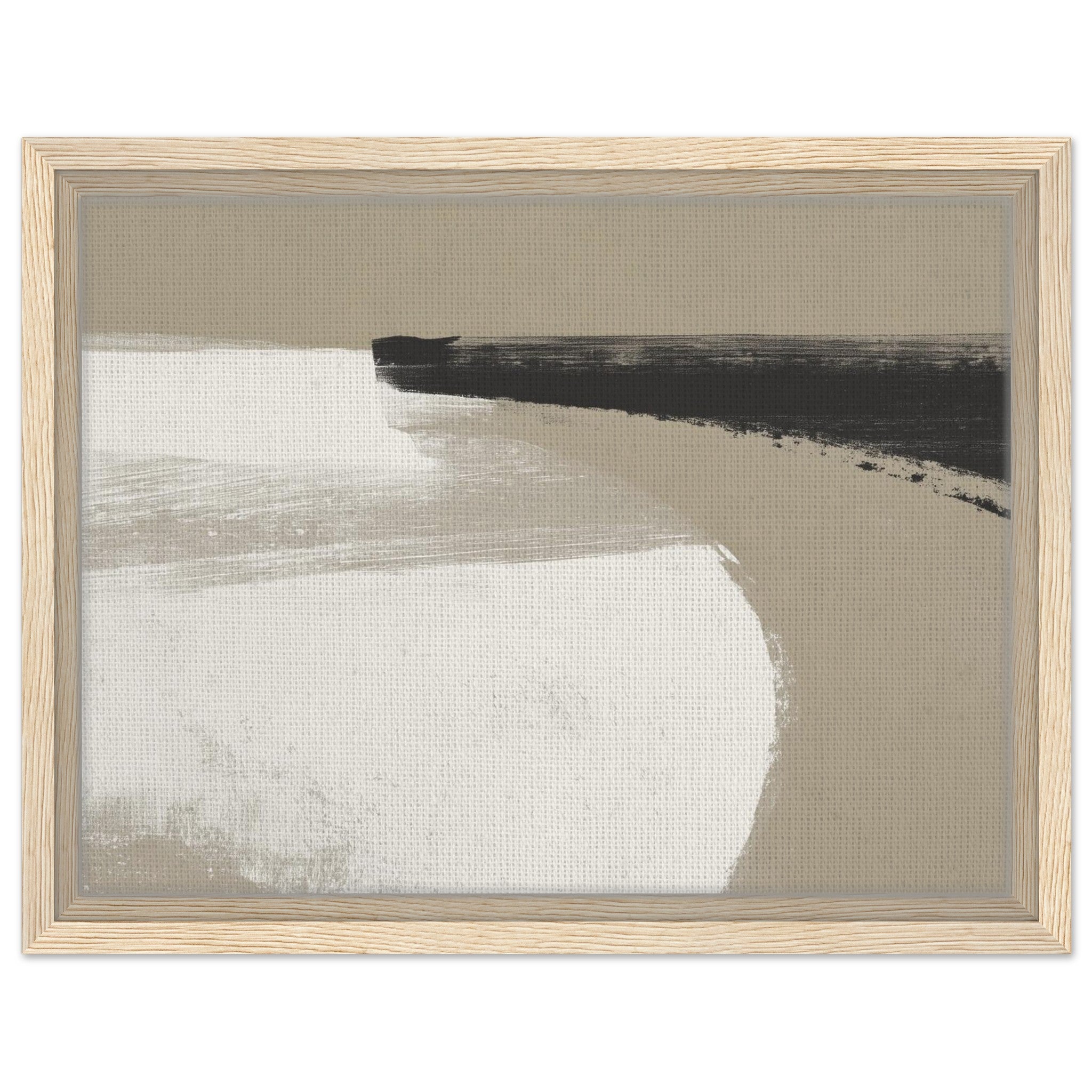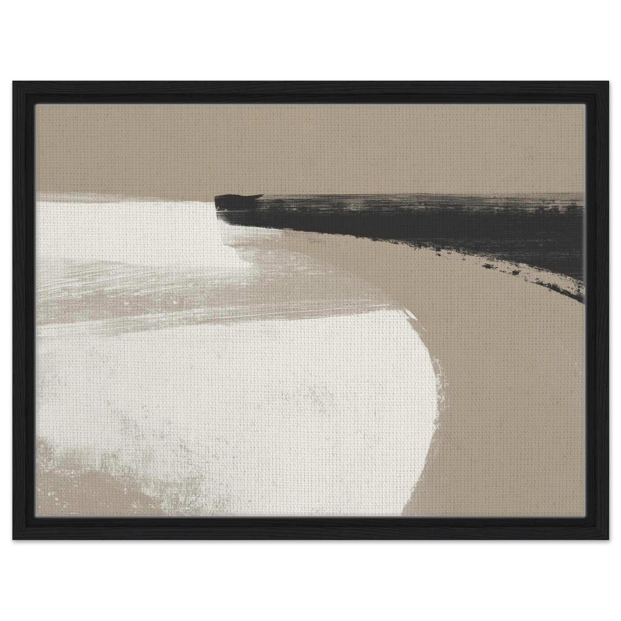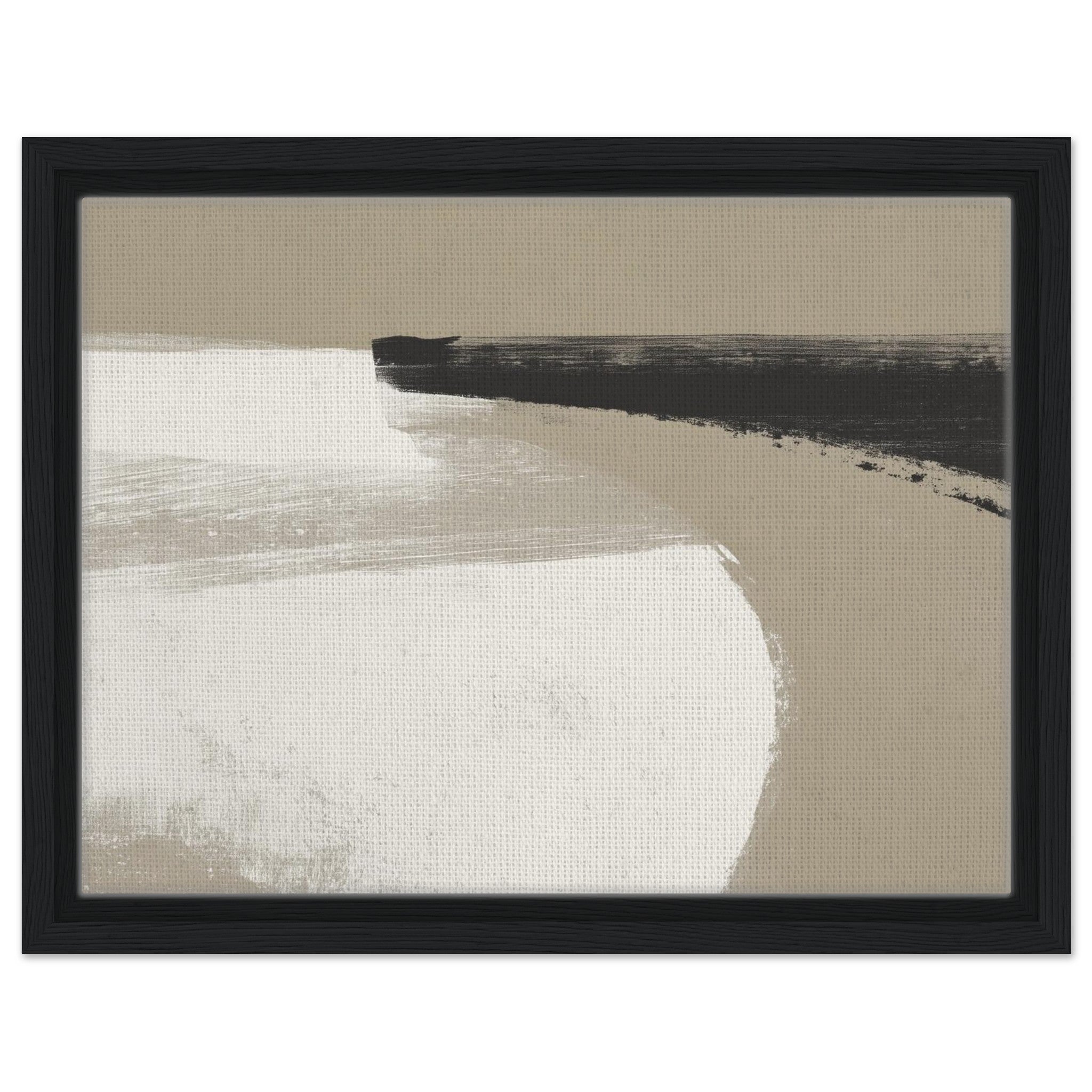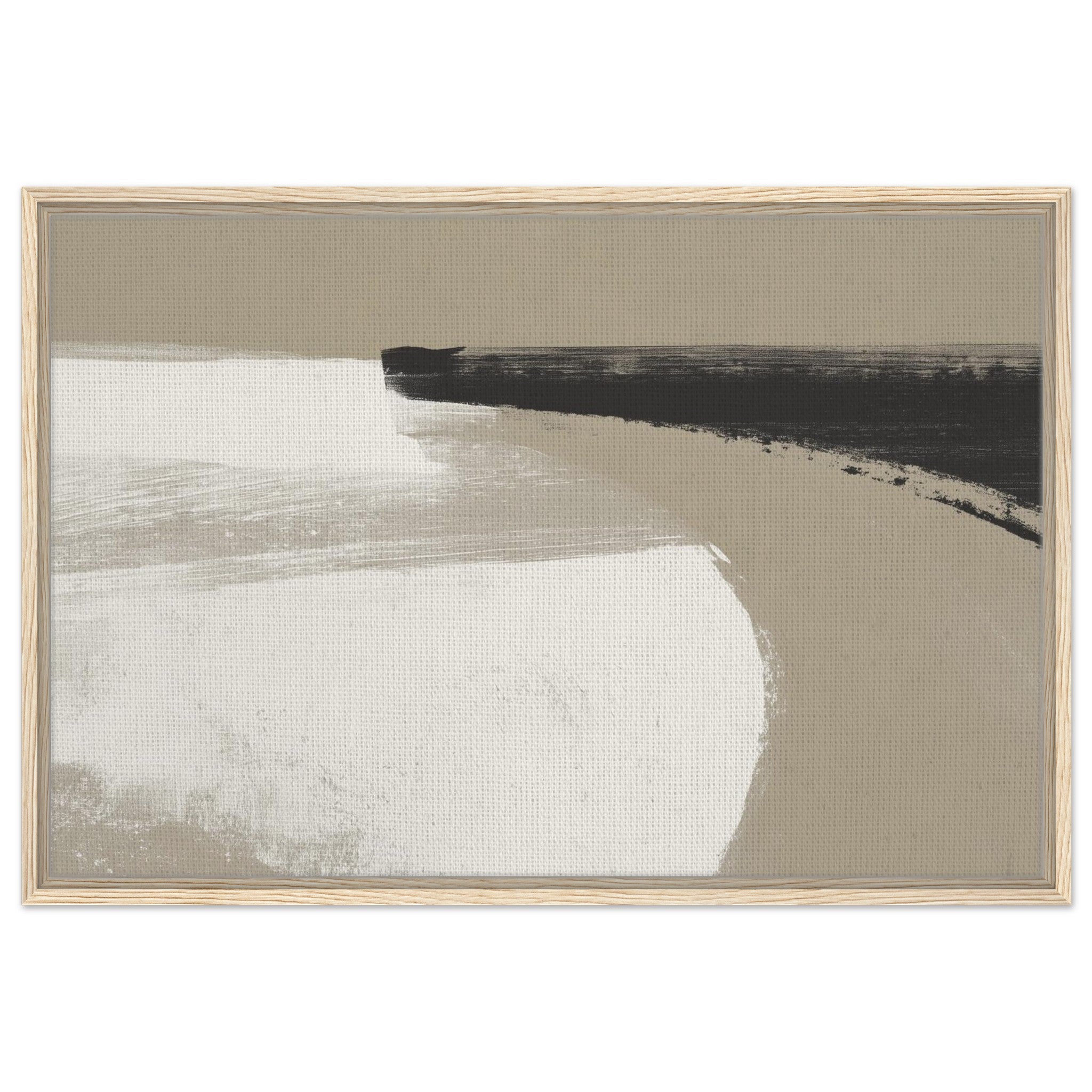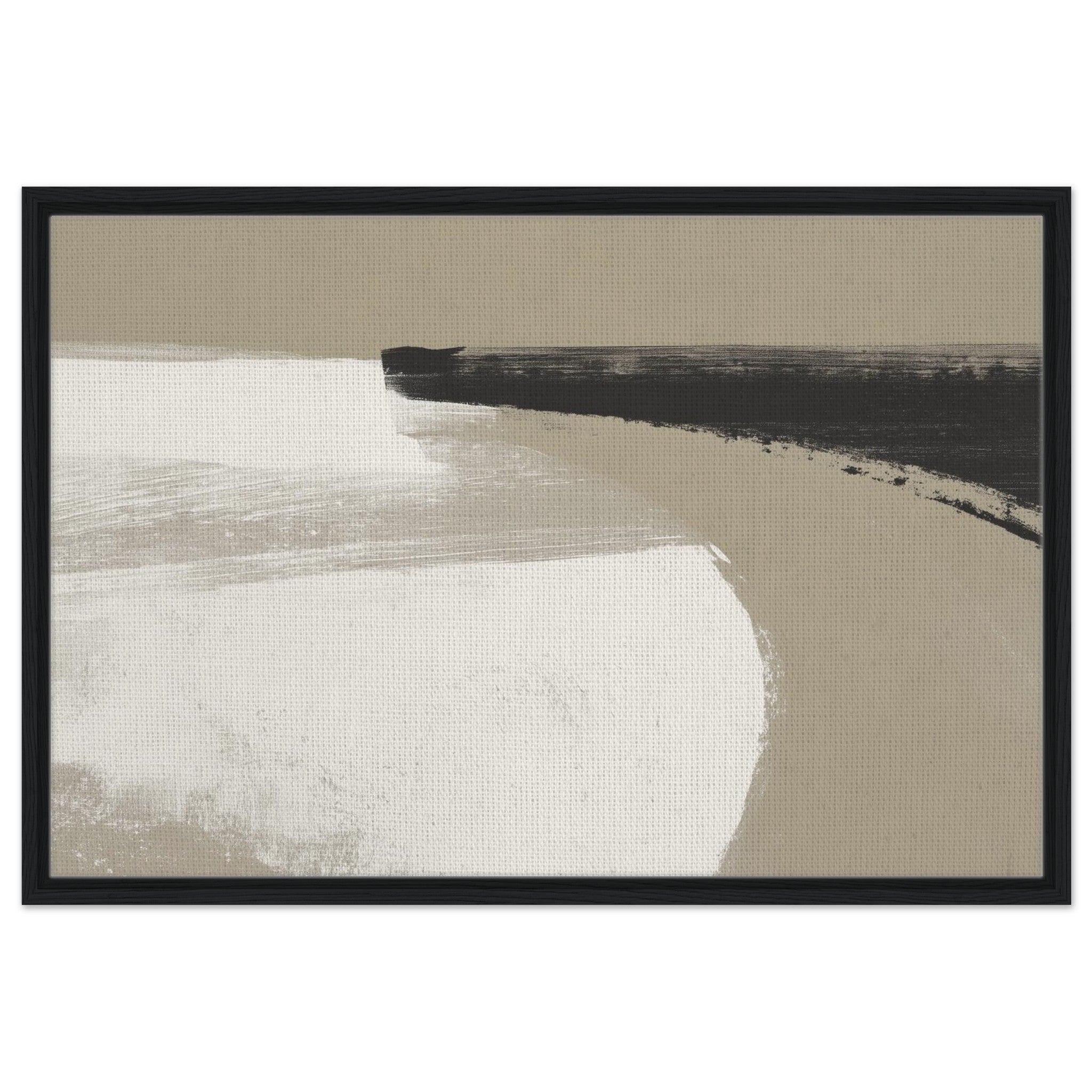 Das Edge of Silence Leinwandbild verbindet Beige, Weiß und Schwarz zu einer ruhigen, abstrakten Komposition. Ein dunkler Pinselstrich am oberen Rand setzt einen starken Kontrast, während die hellen Flächen an Küste, Sand oder Licht im Nebel erinnern. Die klare Formensprache macht das Bild minimalistisch und zugleich wirkungsvoll.