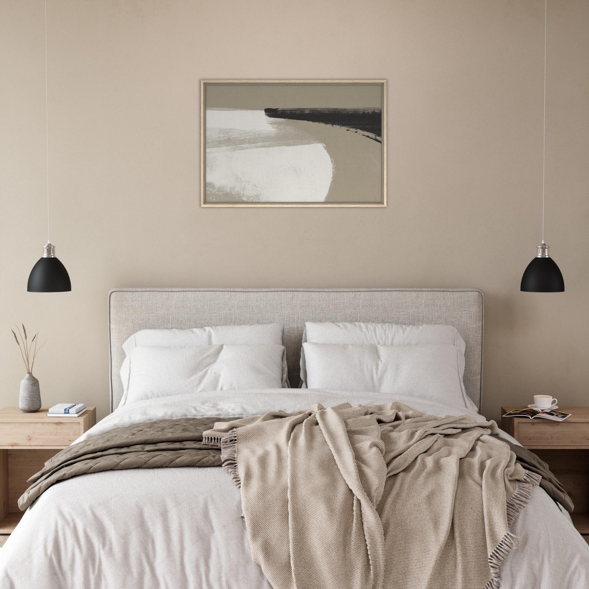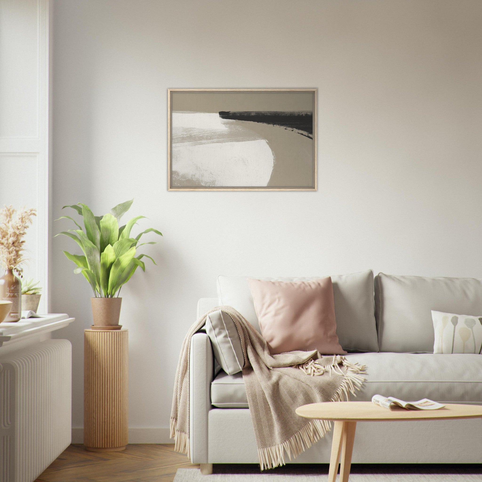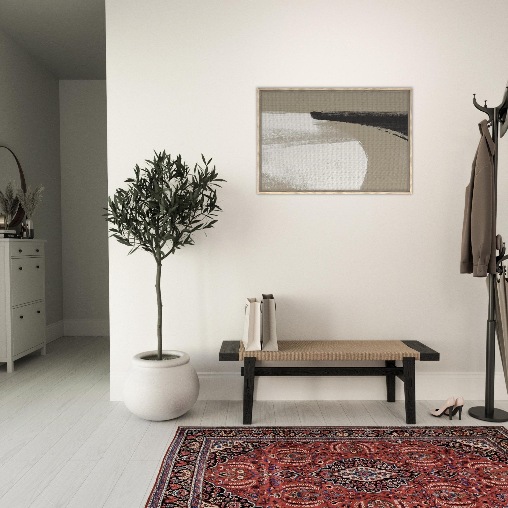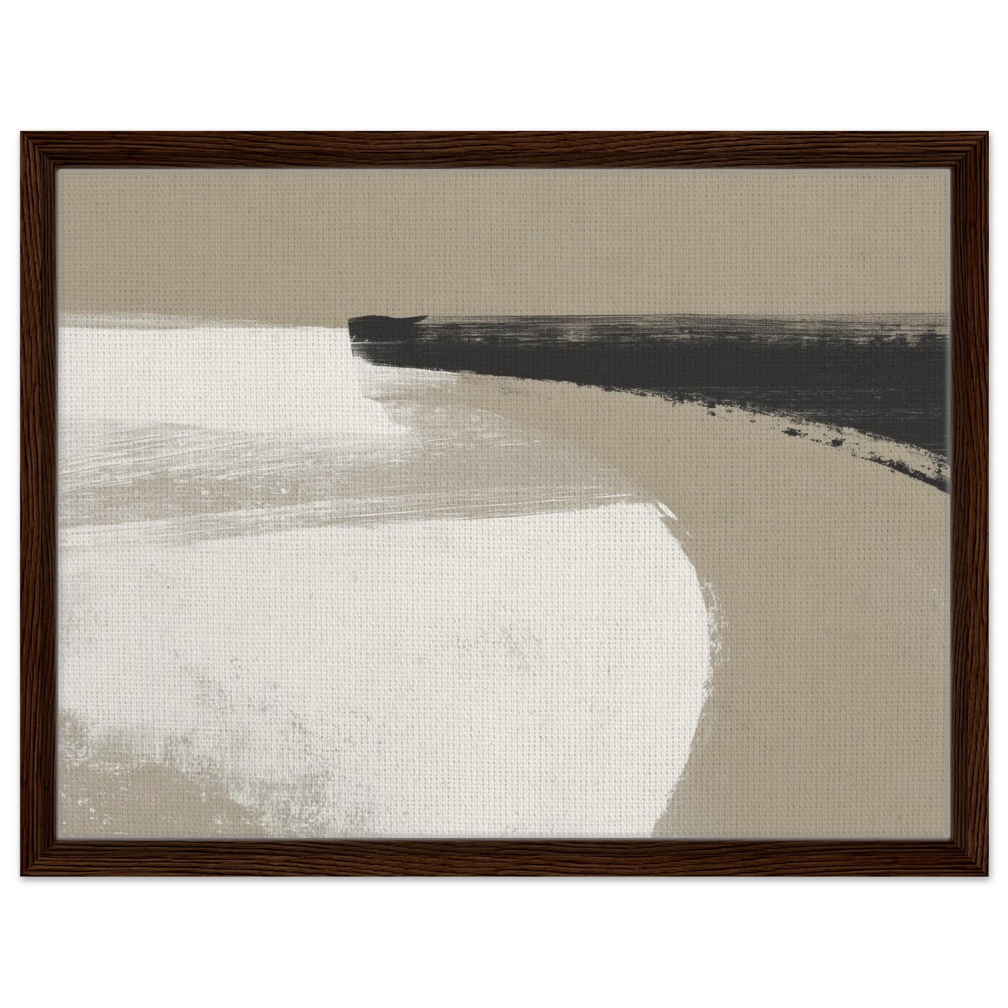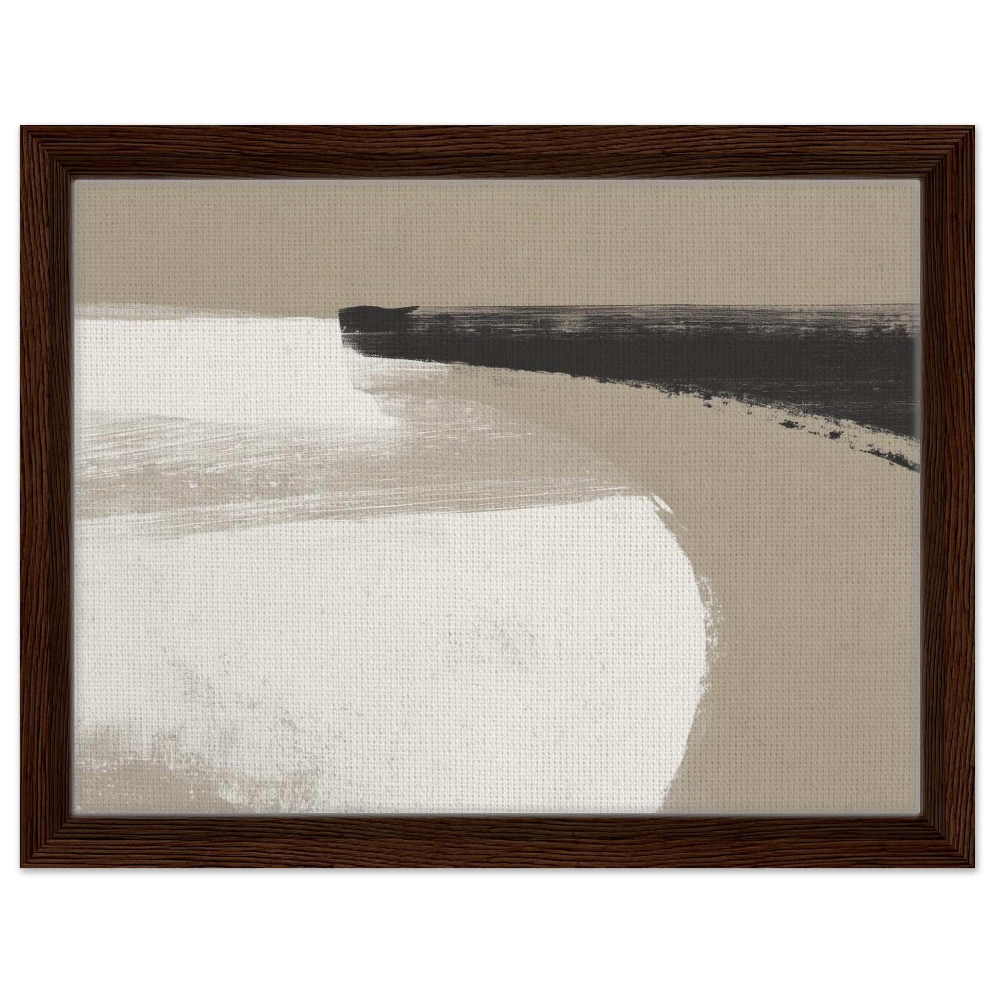 Das Edge of Silence Leinwandbild verbindet Beige, Weiß und Schwarz zu einer ruhigen, abstrakten Komposition. Ein dunkler Pinselstrich am oberen Rand setzt einen starken Kontrast, während die hellen Flächen an Küste, Sand oder Licht im Nebel erinnern. Die klare Formensprache macht das Bild minimalistisch und zugleich wirkungsvoll.