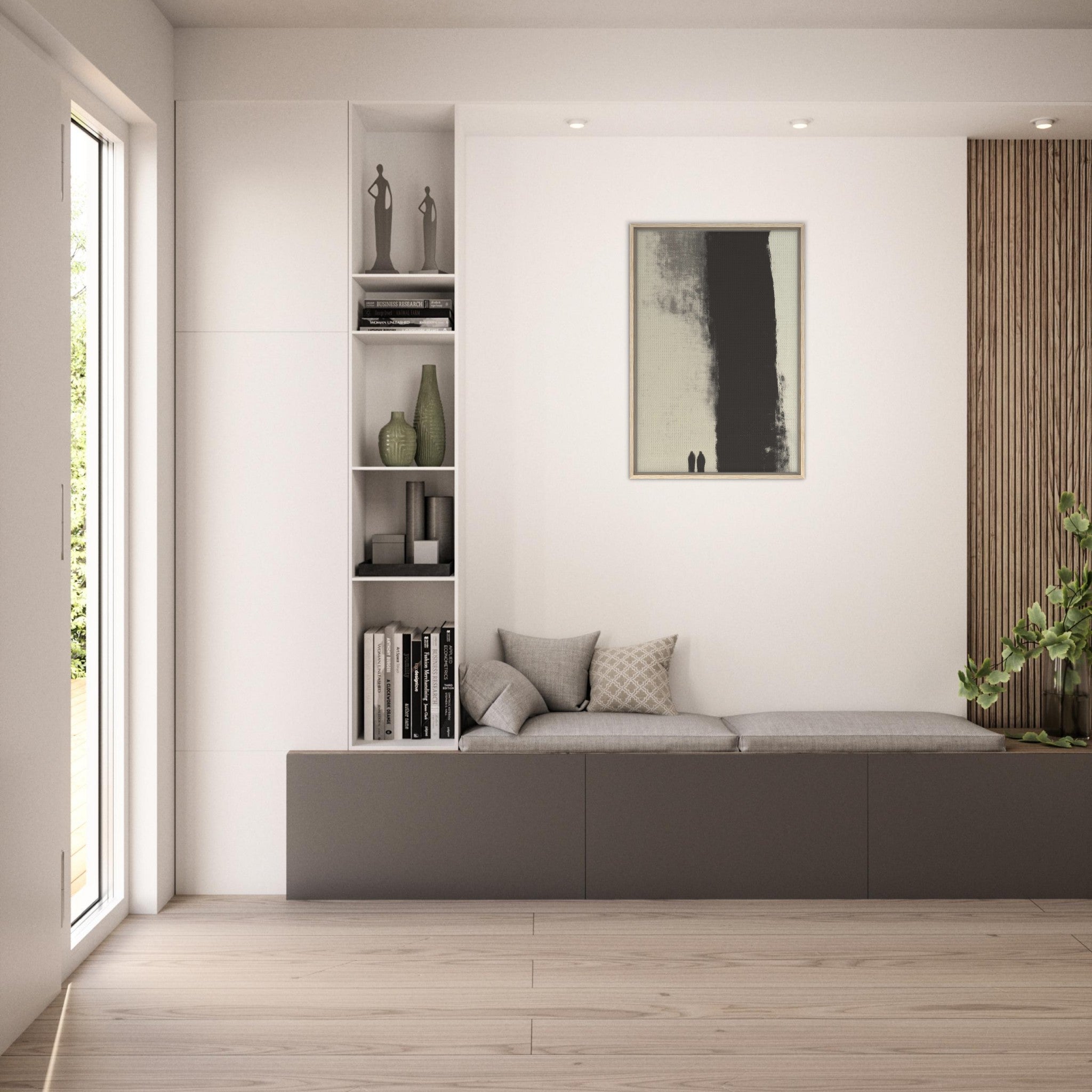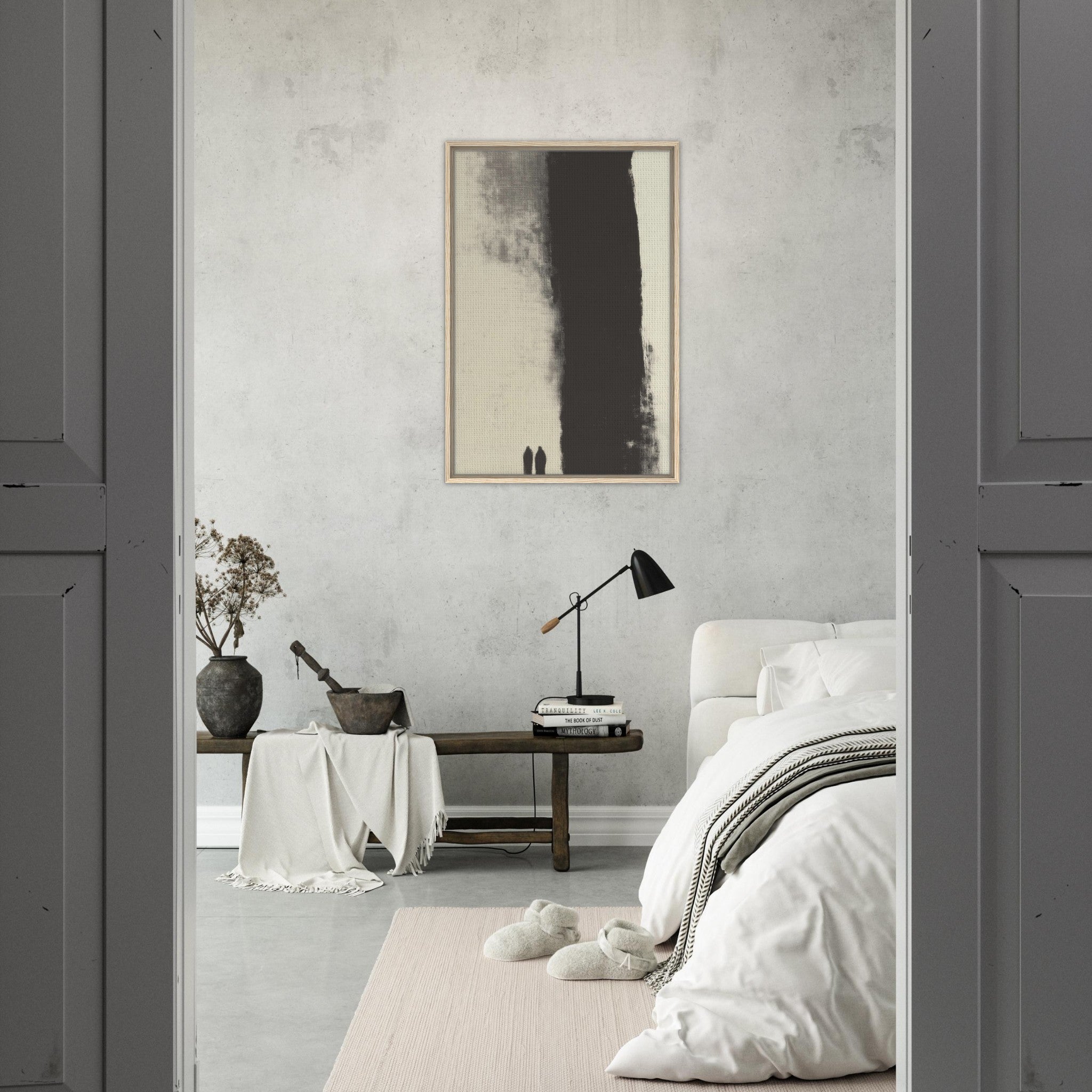 Hänge dieses abstrakte Leinwandbild als starken Akzent in dein Wohnzimmer. Verleihe deinem Schlafzimmer eine stille Tiefe oder gestalte dein Büro mit einem inspirierenden Statement. Die minimalistische Farbgestaltung passt zu vielen Einrichtungsstilen und lässt sich leicht kombinieren.