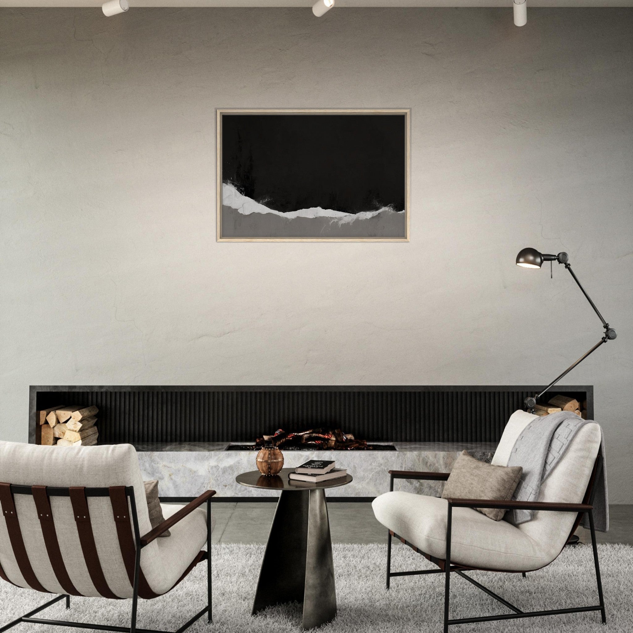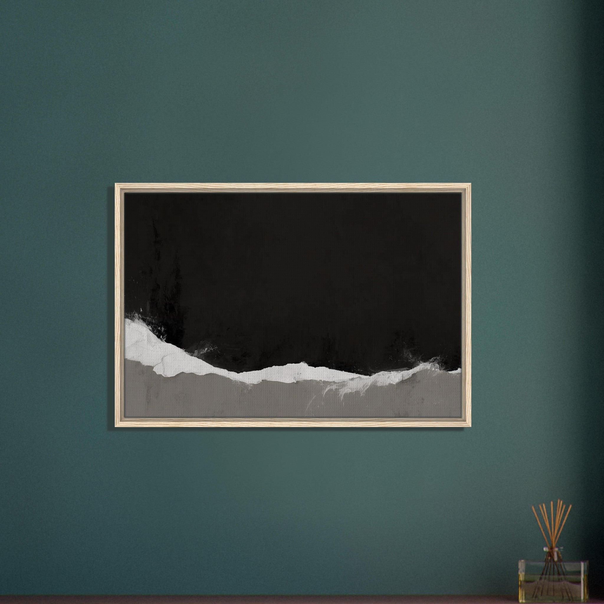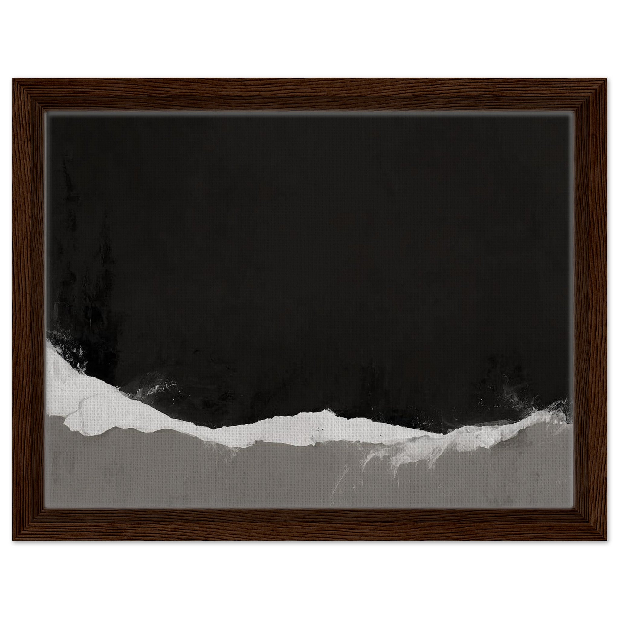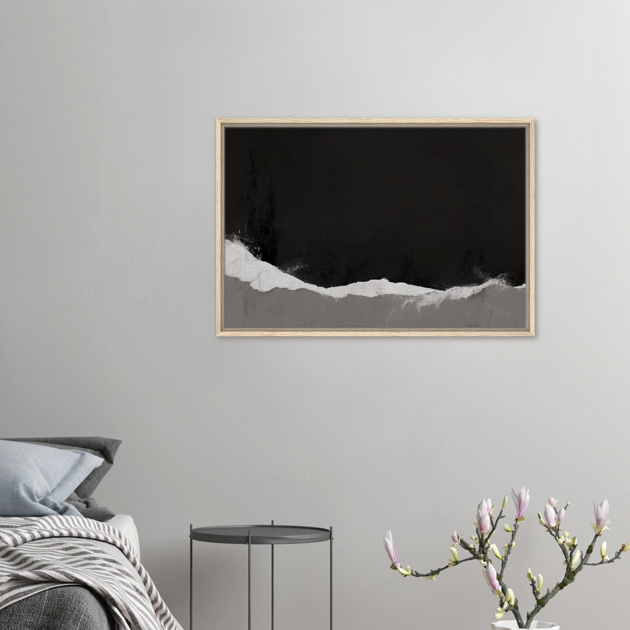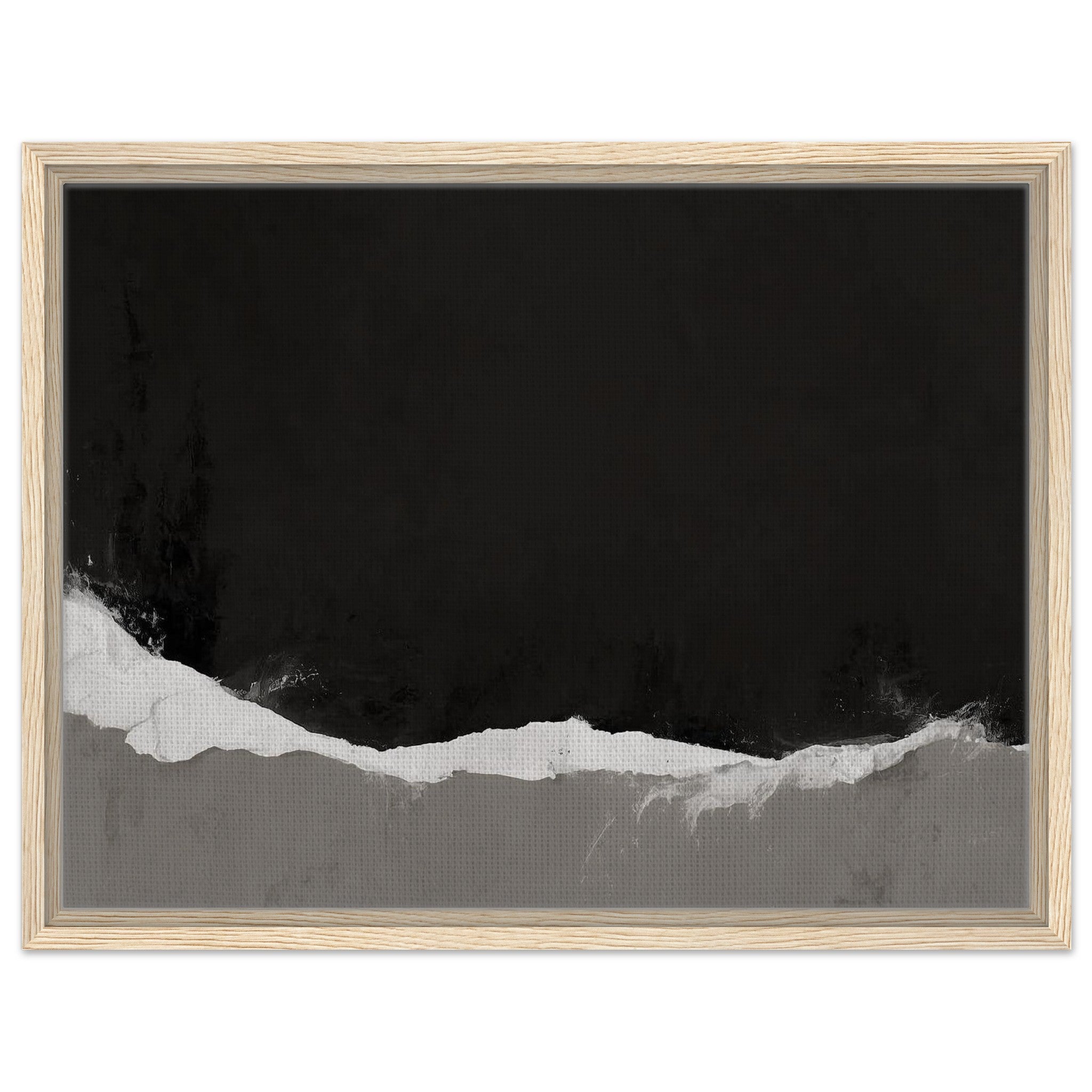 Das Torn Horizon Leinwandbild fängt die rohe Schönheit von Natur und Landschaft auf abstrakte Weise ein. Ein dunkler, fast schwarzer Himmel trifft auf eine unregelmäßige weiße Linie, die wie eine aufgerissene Küste wirkt. Darunter liegt eine ruhige graue Fläche, die Tiefe und Gelassenheit ausstrahlt.